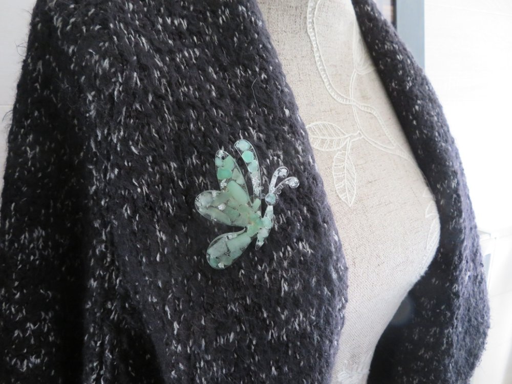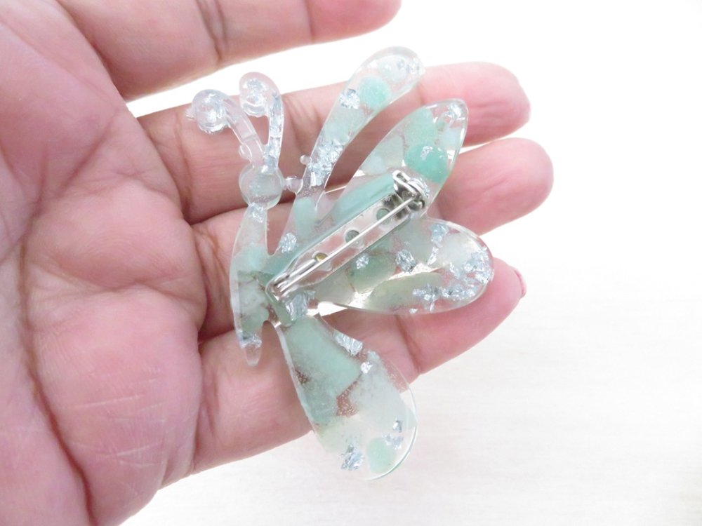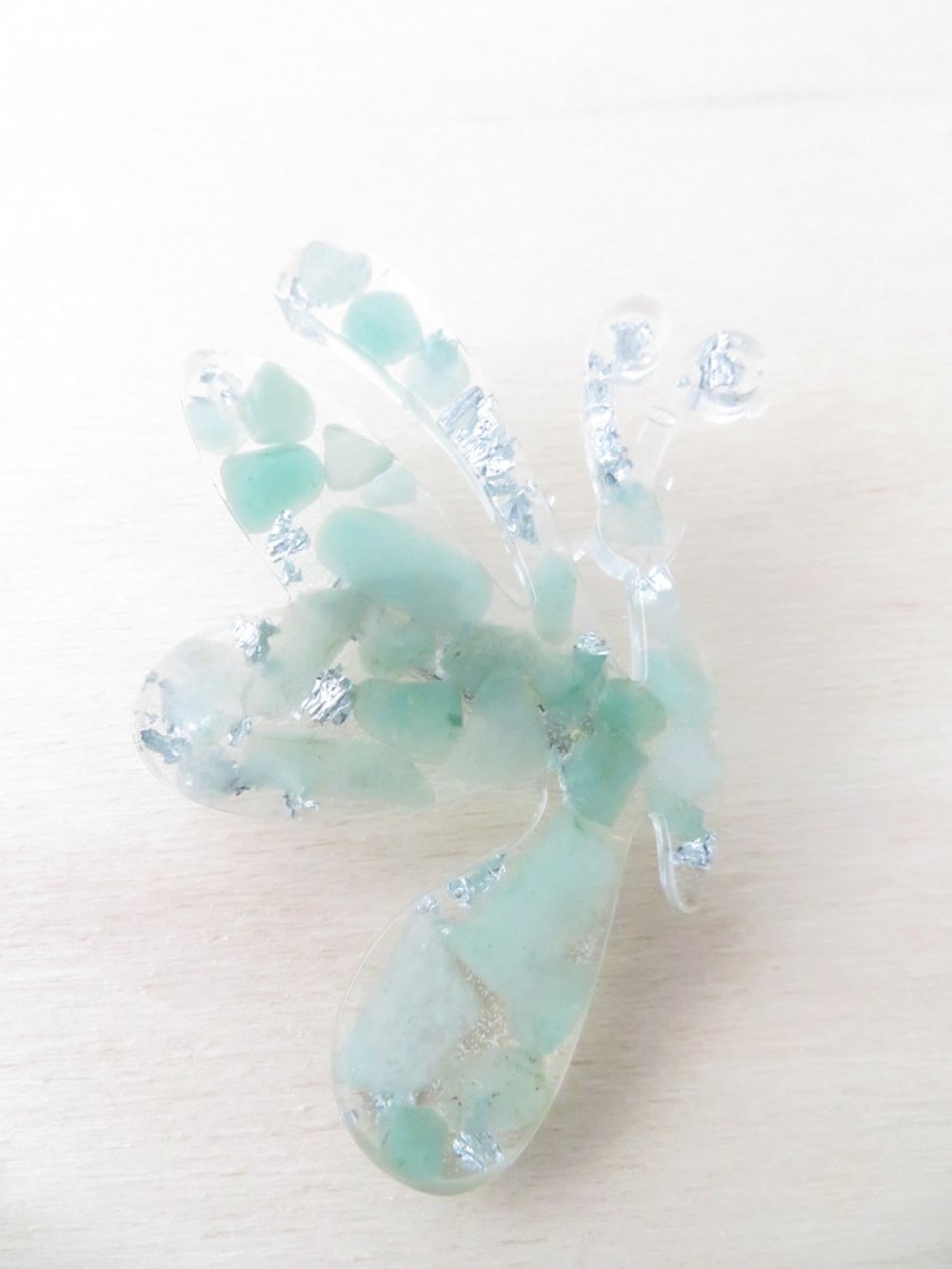 Broche papillon en résine et pierres naturelles Aventurine verte