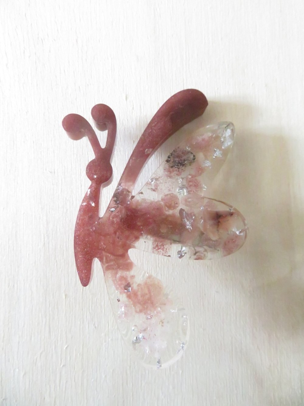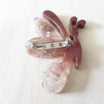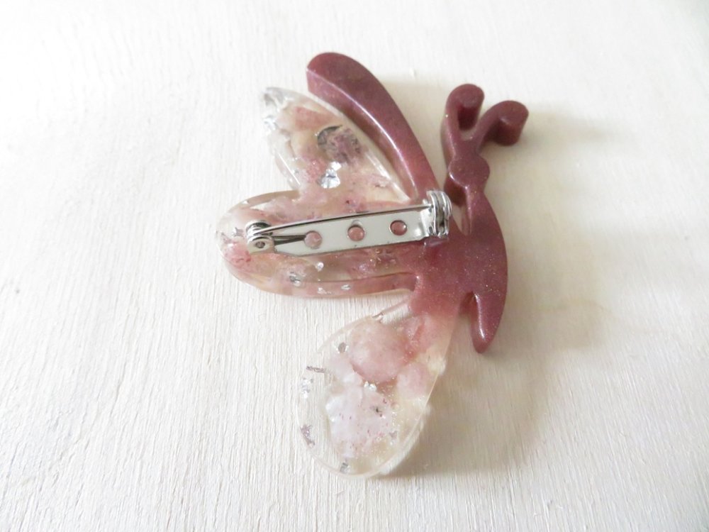 Broche papillon en résine et pierres naturelles Quartz framboise