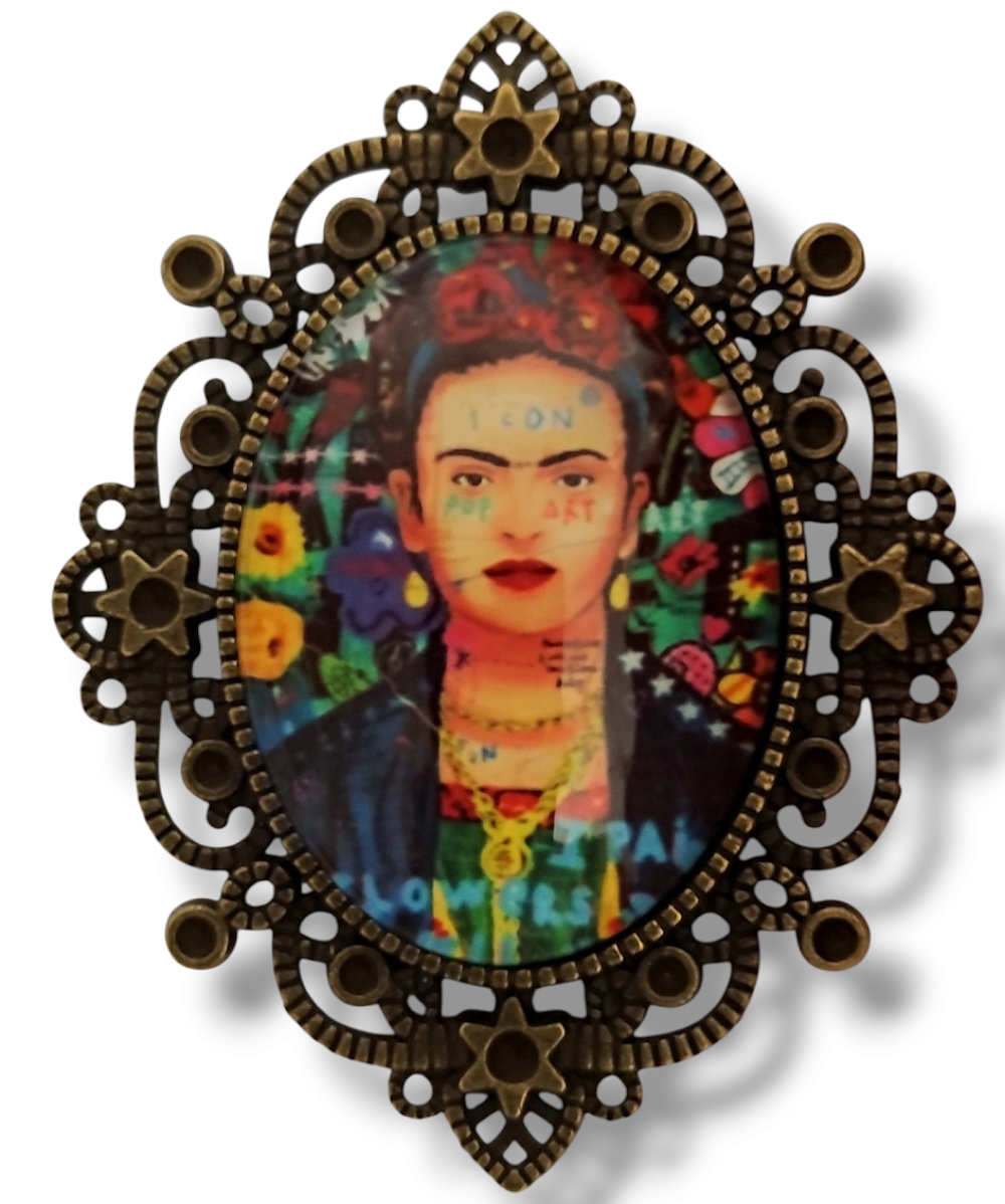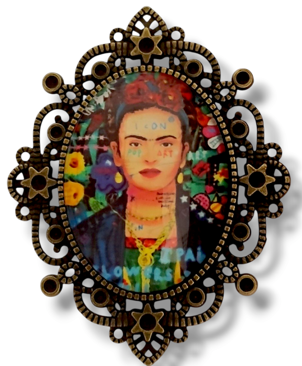 Broche frida kahlo. Accessoire camée. Cadeau unique fait main.