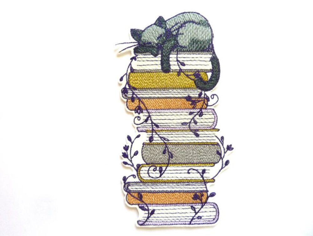 Ecusson chat perché sur des livres thermocollant