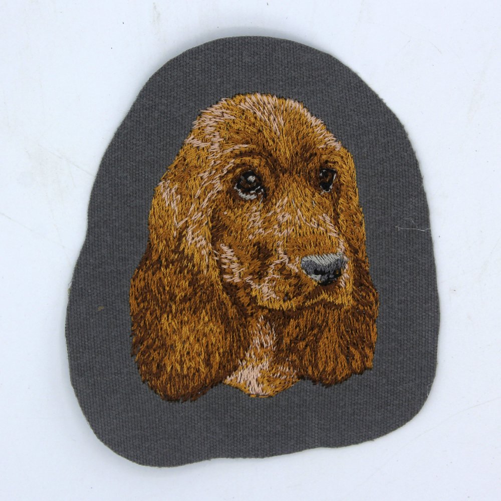 Écusson patch brodé race de chien cocker, broderie machine thermocollant ou à coudre, made in france, fabriqué en france by team numérik