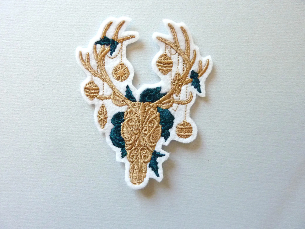 Appliqué écusson patch badge tête de cerf et boules à thermocoller.