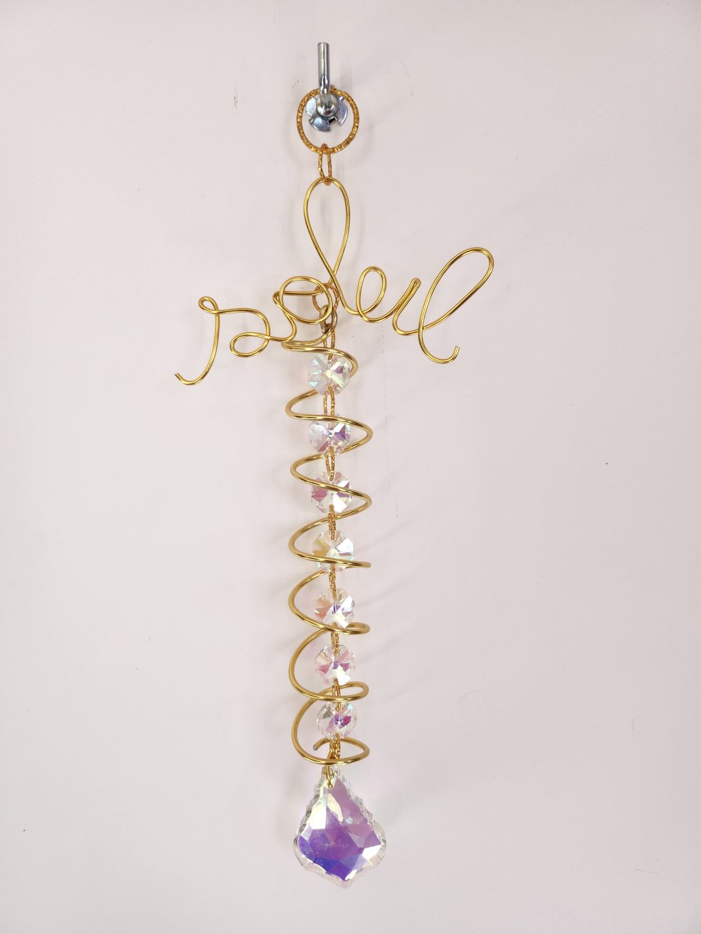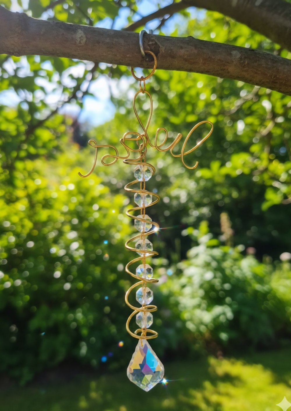 Attrape soleil en spirale agrémenté de perles qui scintillent aux reflets du soleil.