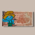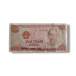 Voici un billet authentique de 200 Dong vietnamien, revisité pour créer une œuvre pop unique.