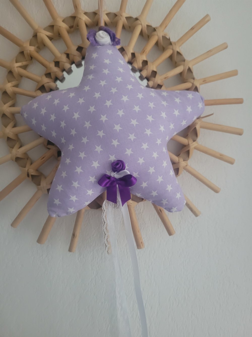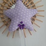 Etoile déco à suspendre en tissu de coton lilas et étoiles.