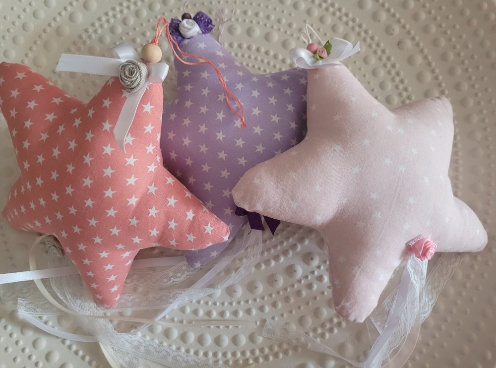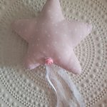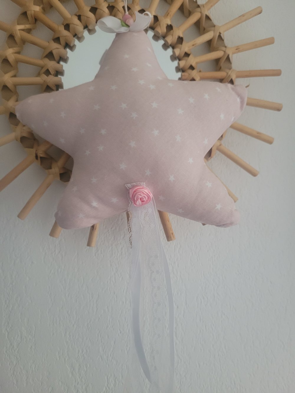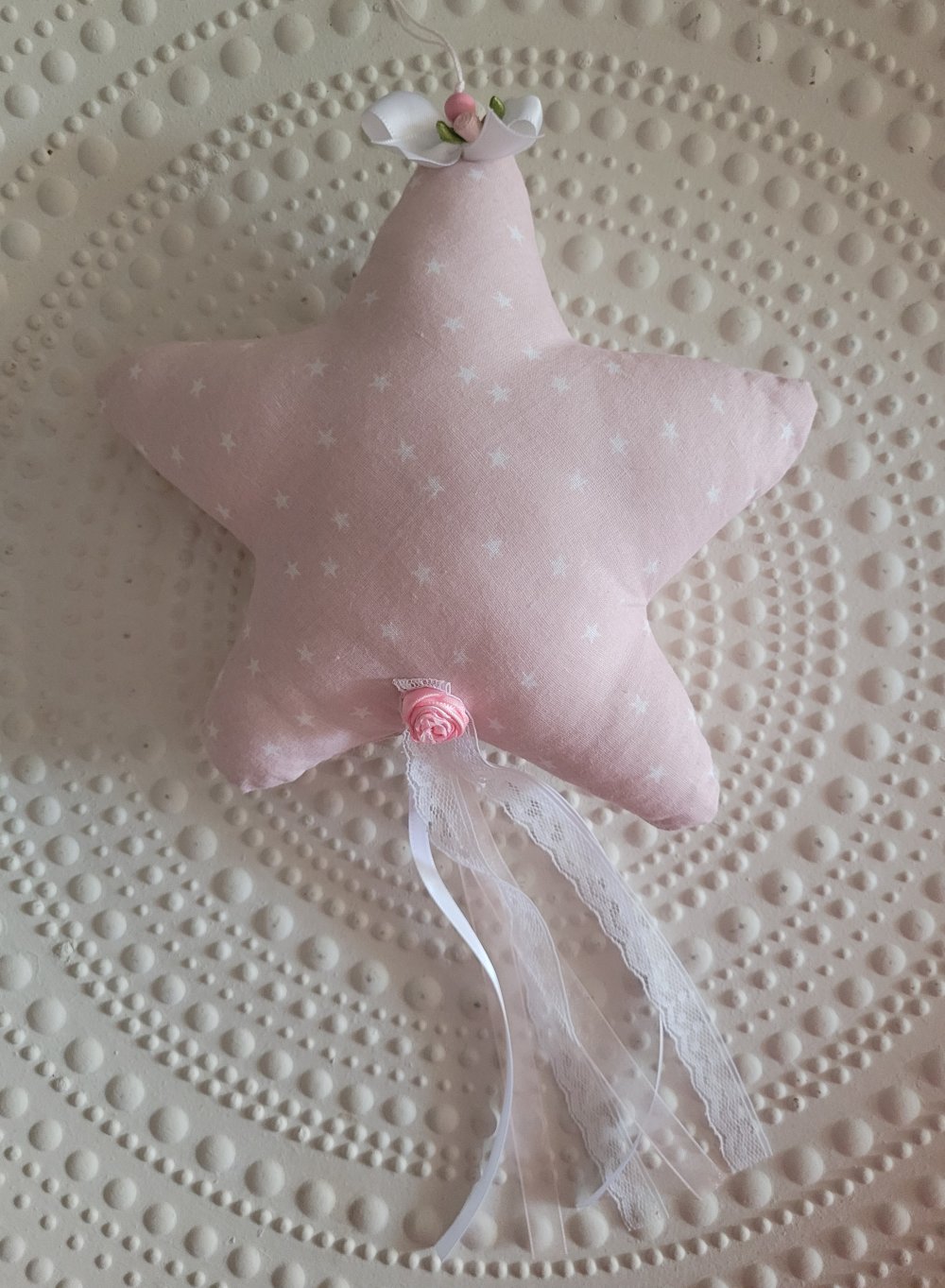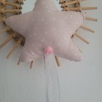Etoile déco à suspendre en tissu de coton rose pale et étoiles.