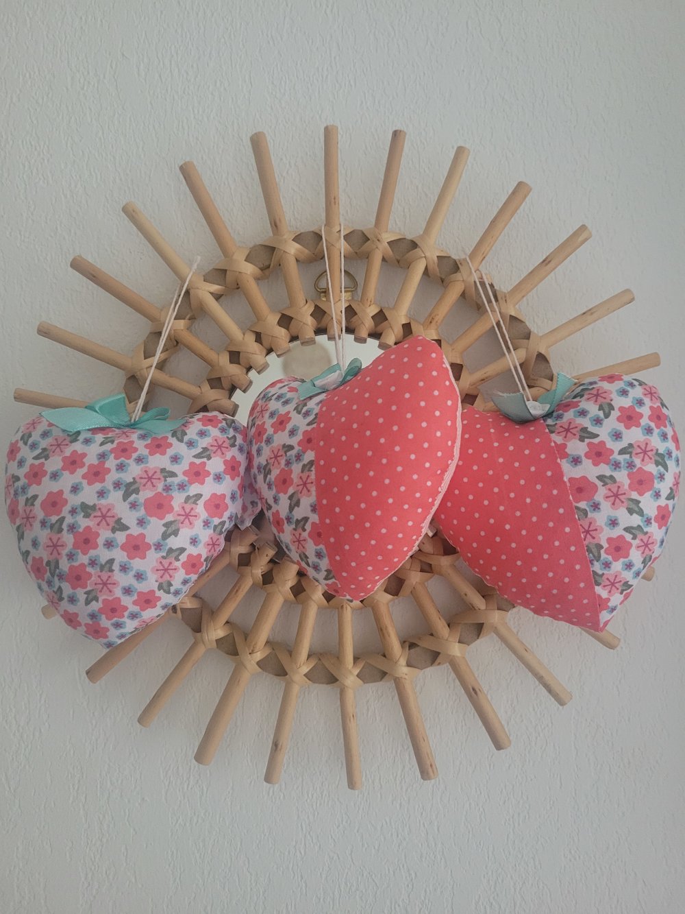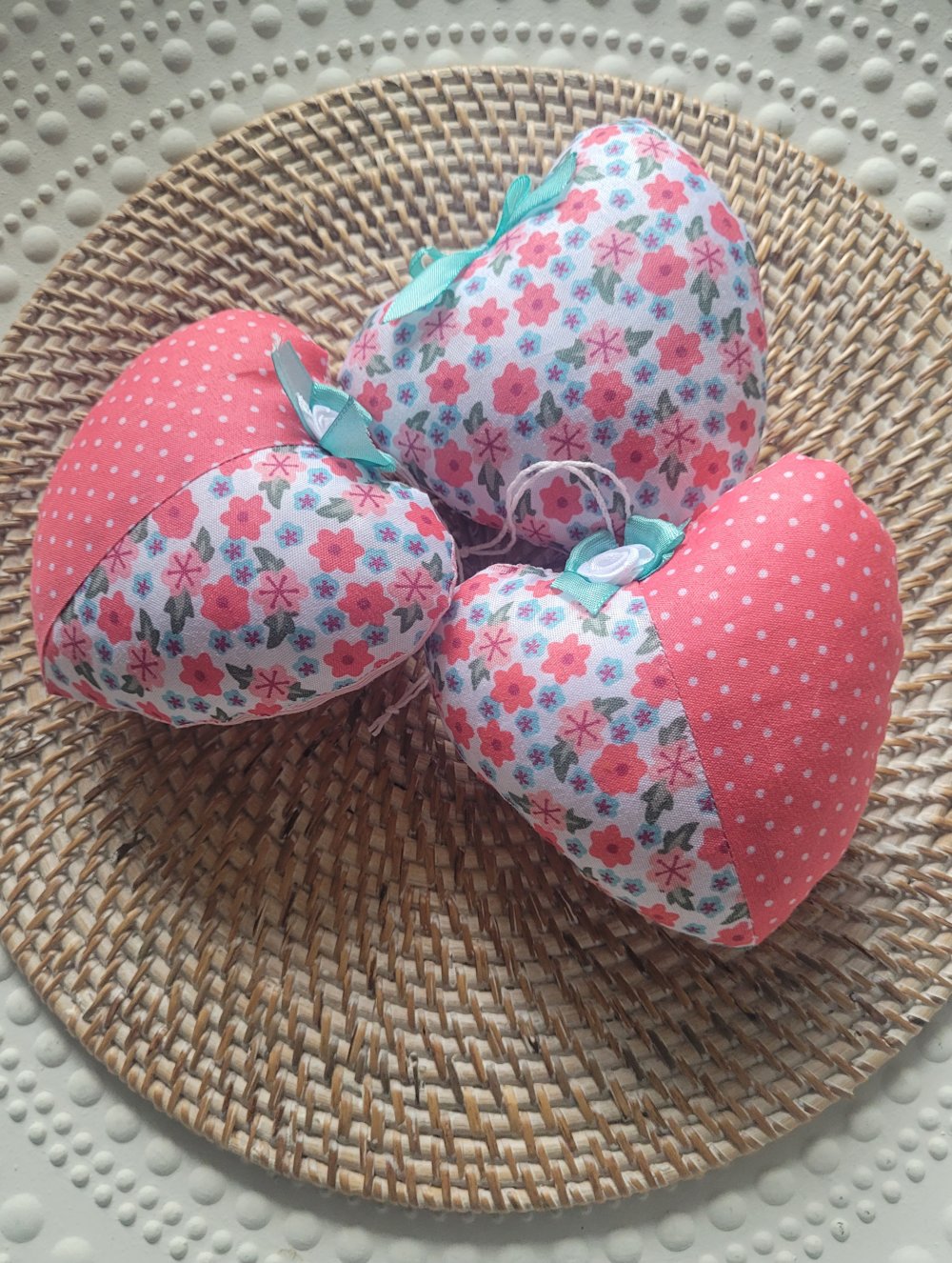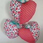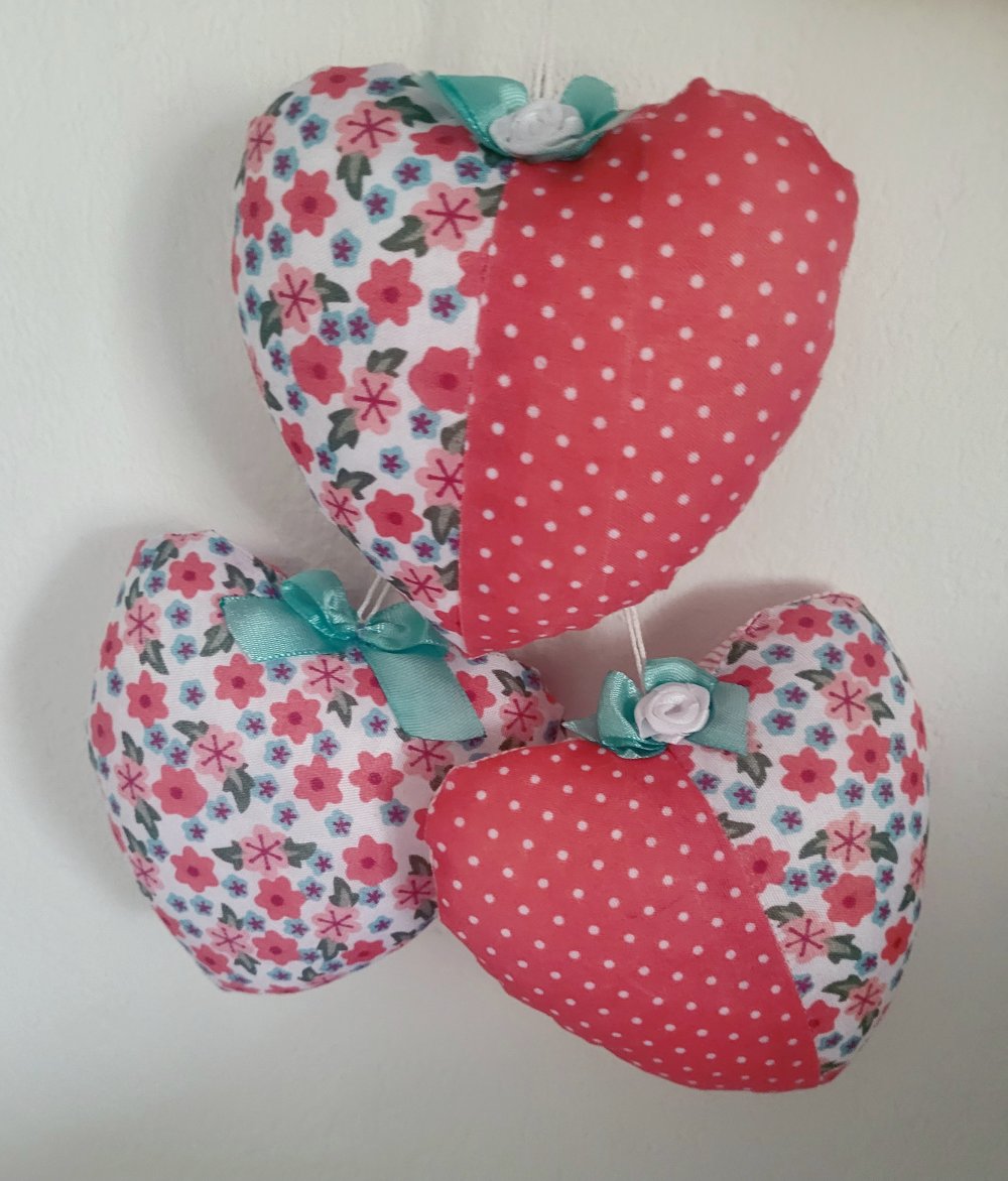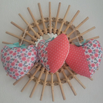 Lot de 3 cœurs à suspendre en tissu fleuri.