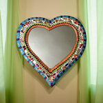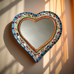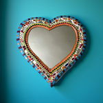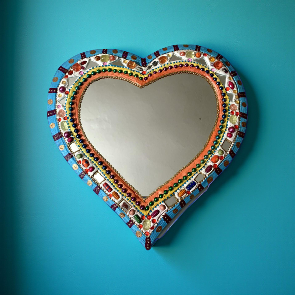 miroir" cœur turquoise et perles arc en ciel" décoration murale fait main, pièce unique, décoration de chambre , salon, cadeau romantique