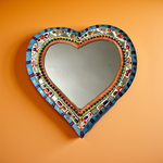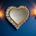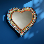 êtes vous à la recherche d'un cadeau fait-main, voici un cœur ,véritable cadeau d' amour , pour la décoration murale, il incarne le luxe intemporel et le savoir-faire artisanal, conçu pour apporter une touche de raffinement à tout intérieur , réalisé dans mon atelier, en Drôme provençale, j'ai créé ce cœur , j'ai travaillé avec une technique mixte, que j'ai inventée pour mon travail, et qui allie la mosaïque et la peinture joyeuse , la mosaïque est composée de perles multicolores ,de carrés de miroir découpés par moi, des éléments recyclés, puis, après séchage du miroir, j'ai appliqué la peinture acrylique , parfois nacrée, métallisée , ensuite j'ai dessiné avec de la peinture 3 D relief , en cerne gouttes et tout autours du miroir ,pour terminer, j'ai passé 2 couches de vernis acrylique satiné. Pièce unique signée pour la décoration murale, unique et joyeuse! avec un esprit Pop Art, miroir signé au dos Odile Maffone fait main en France