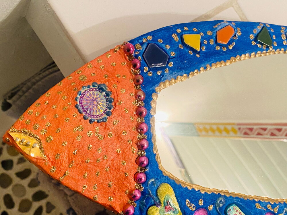 Ce miroir en forme est fabriqué par une artiste qualifiée spécialisée dans la décoration intérieure peinte à la main. sa passion pour son métier est évidente dans les détails complexes et les couleurs vibrantes de chaque pièce. En achetant ce miroir, vous ajoutez non seulement un bel objet à votre maison, mais vous soutenez également le savoir-faire et les moyens de subsistance de ces artistes talentueux.