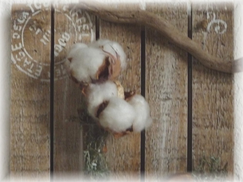 Panneau tableau nature, fleurs de coton, bois flotté,déco nature