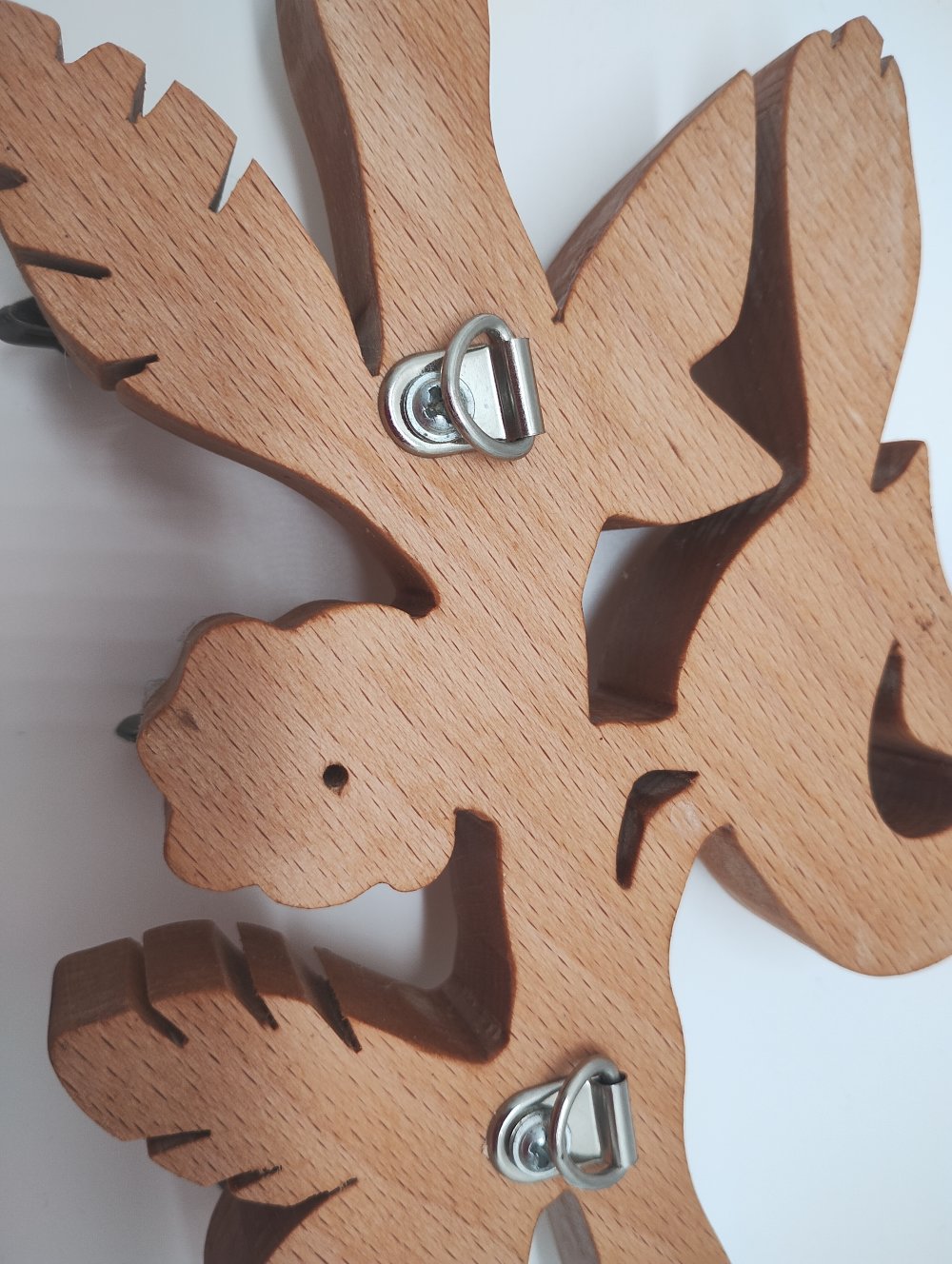 Accroche-clés en bois de hetre, 2 accroches à l'arrière et 3 patères devant