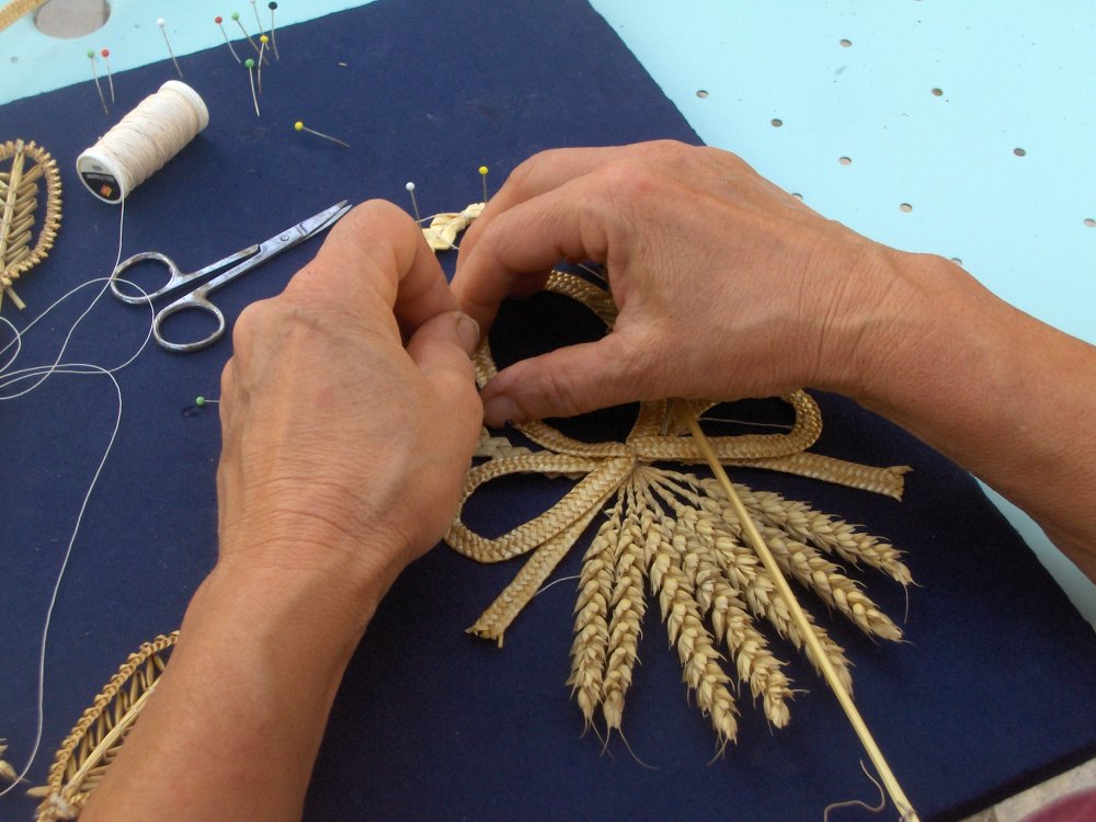 Les "Tortillons", une fine corde assez solide, qui donne d'innombrables choix de décorations, comme des dentelles, rosettes et d'autres formes stylisées qu'on trouve dans la nature. Ils sont faits avec deux fines lamelles de tige de blé fendue, puis assemblées et torsadées ensemble avec une sorte de rouet en bois.