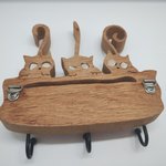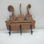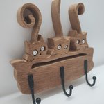 Porte-clés mural 3 chats en chêne chantourné, poncé et verni à la main