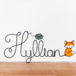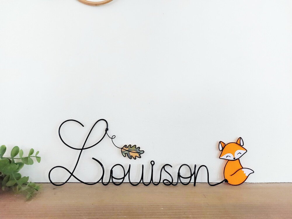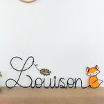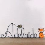 Création composée d'un prénom, d'un renard et d'une petite feuille.