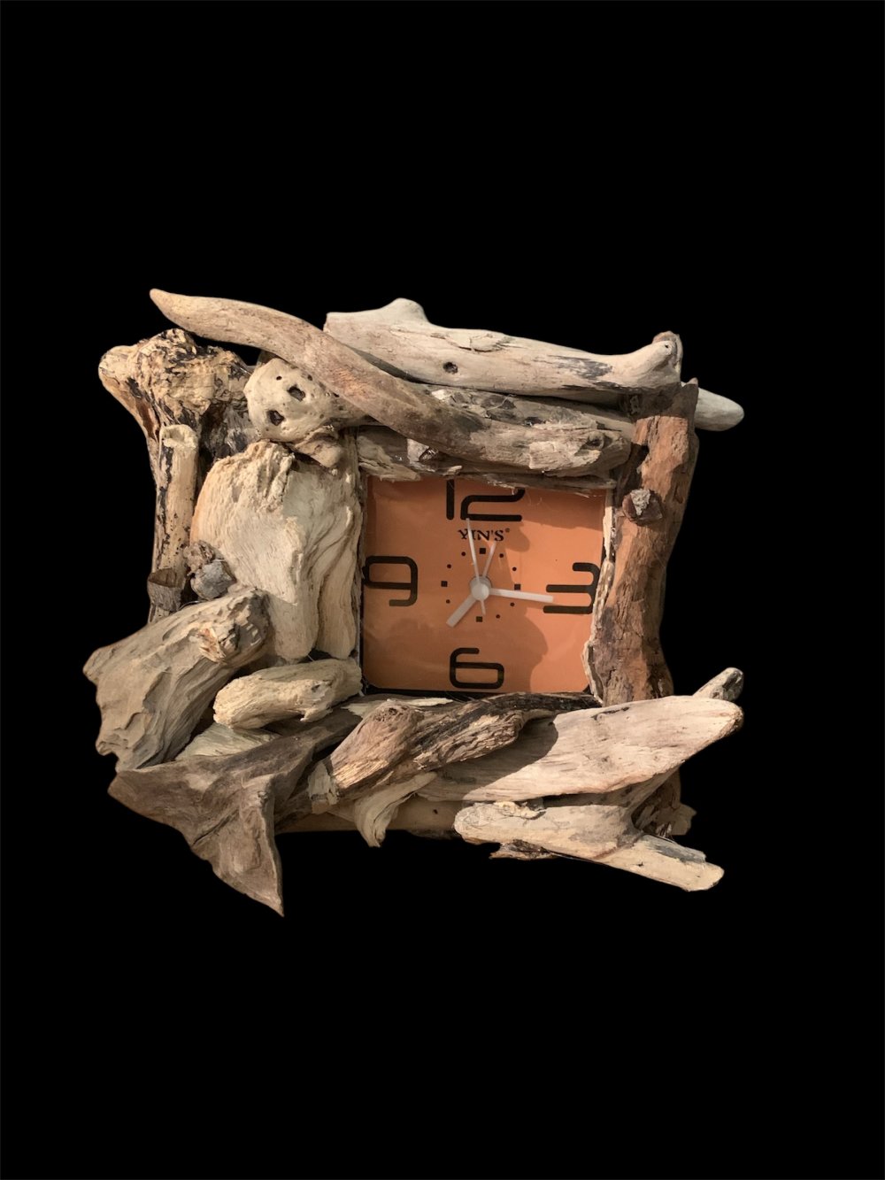 Réveil en bois flotté à poser sur un bureau. Décoration en bois flotté. Fabrication artisanale en bois flotté. Création en bois flotté. Fait main dans le sud de la France. Pièce unique. Idée cadeau pour Noël.