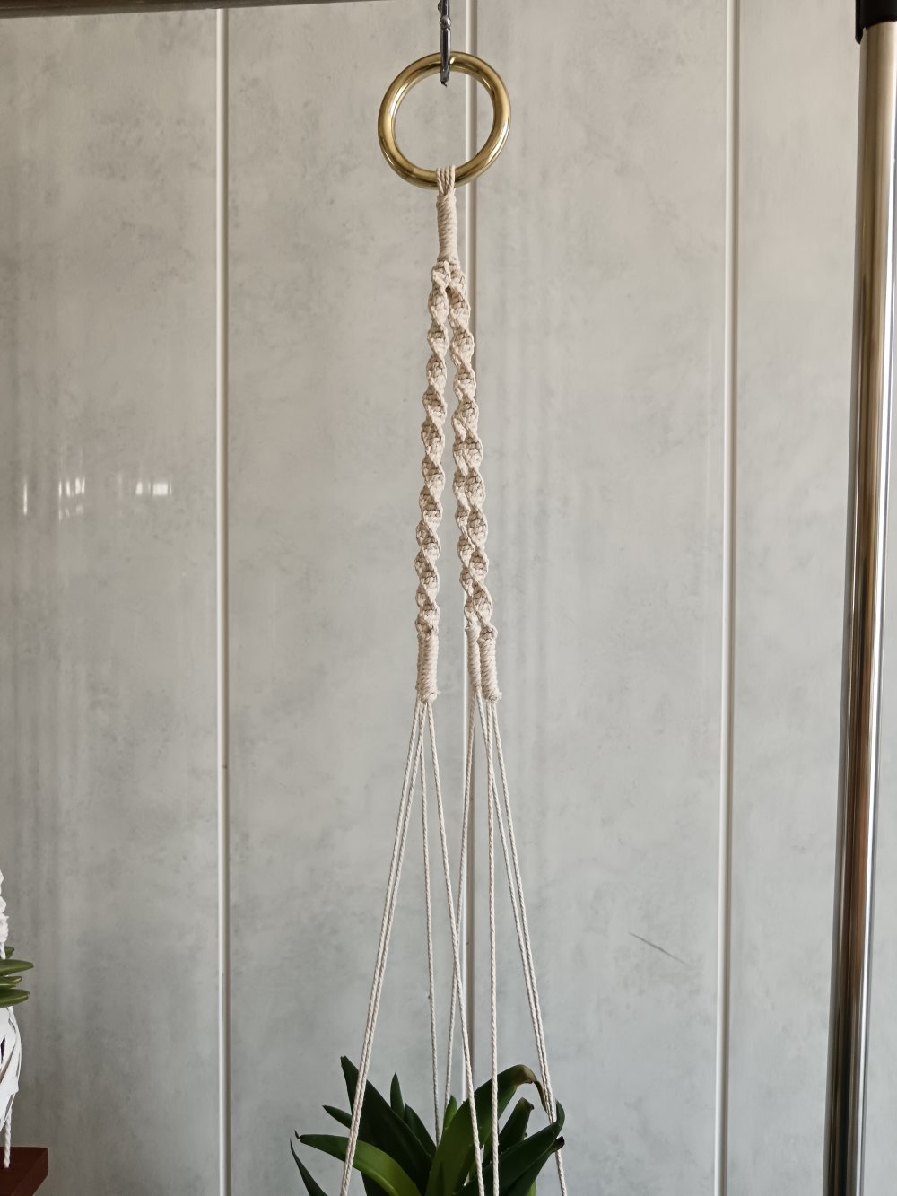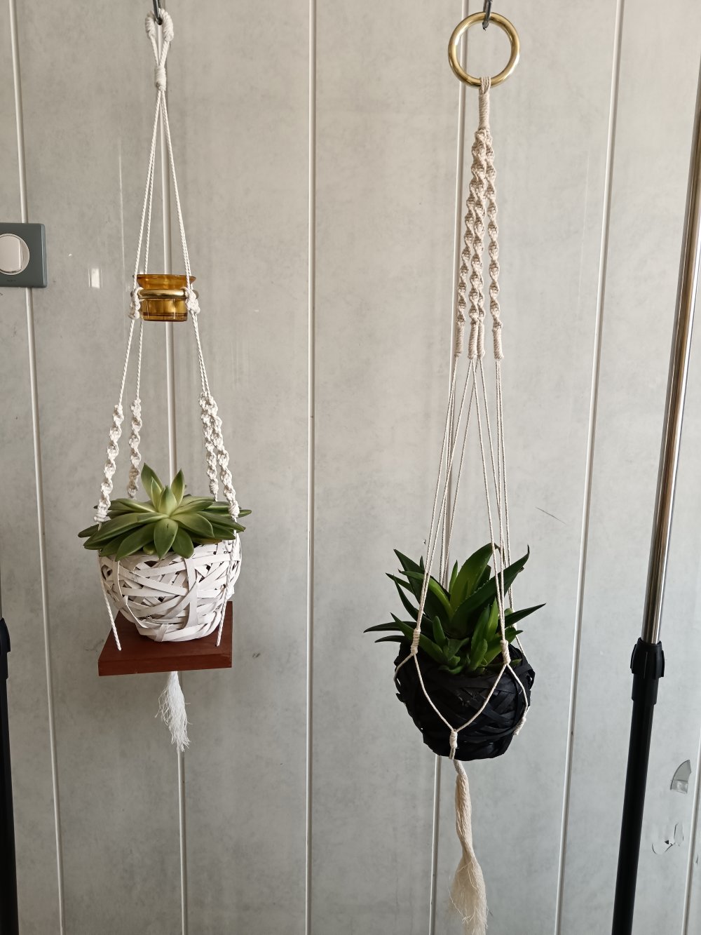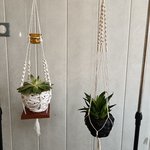 Voici une suspension de plante en macramé .