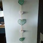Voici une suspension verticale composée de cœurs dans de doux tons verts, parfaits pour créer une ambiance naturelle et apaisante chez toi.