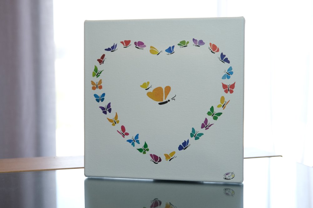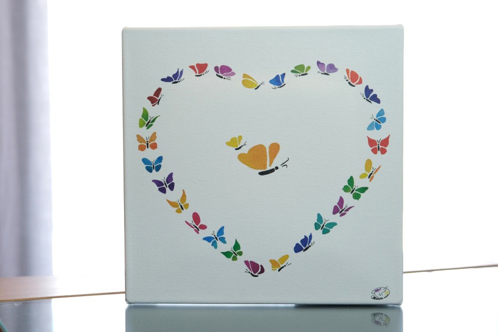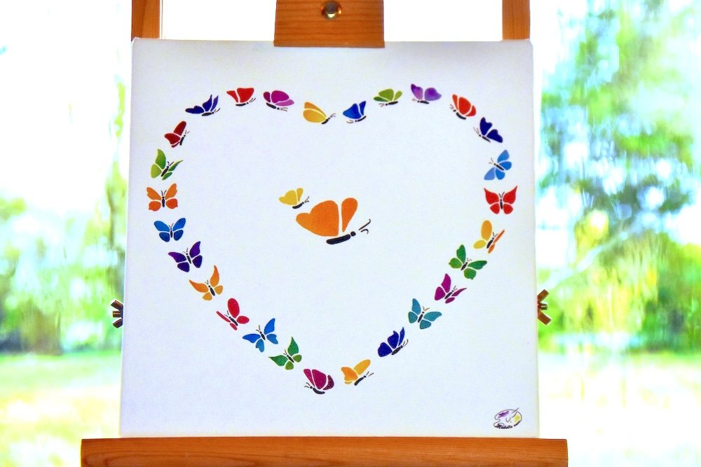 Laissez entrer les couleurs dans votre déco intérieure avec ce tableau sur toile Coeur Papillons qui égayera votre maison !