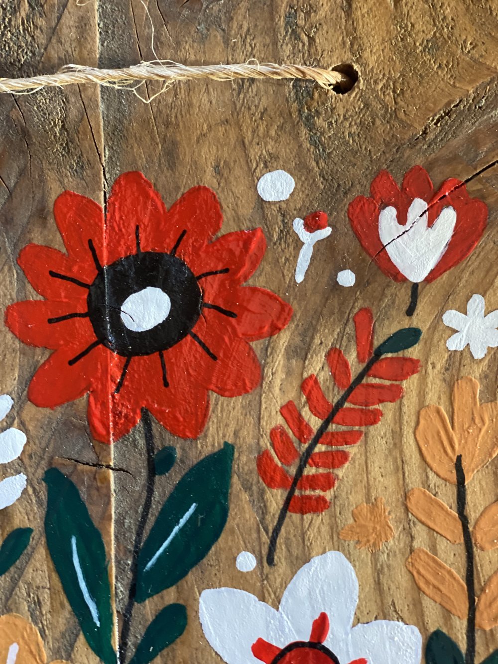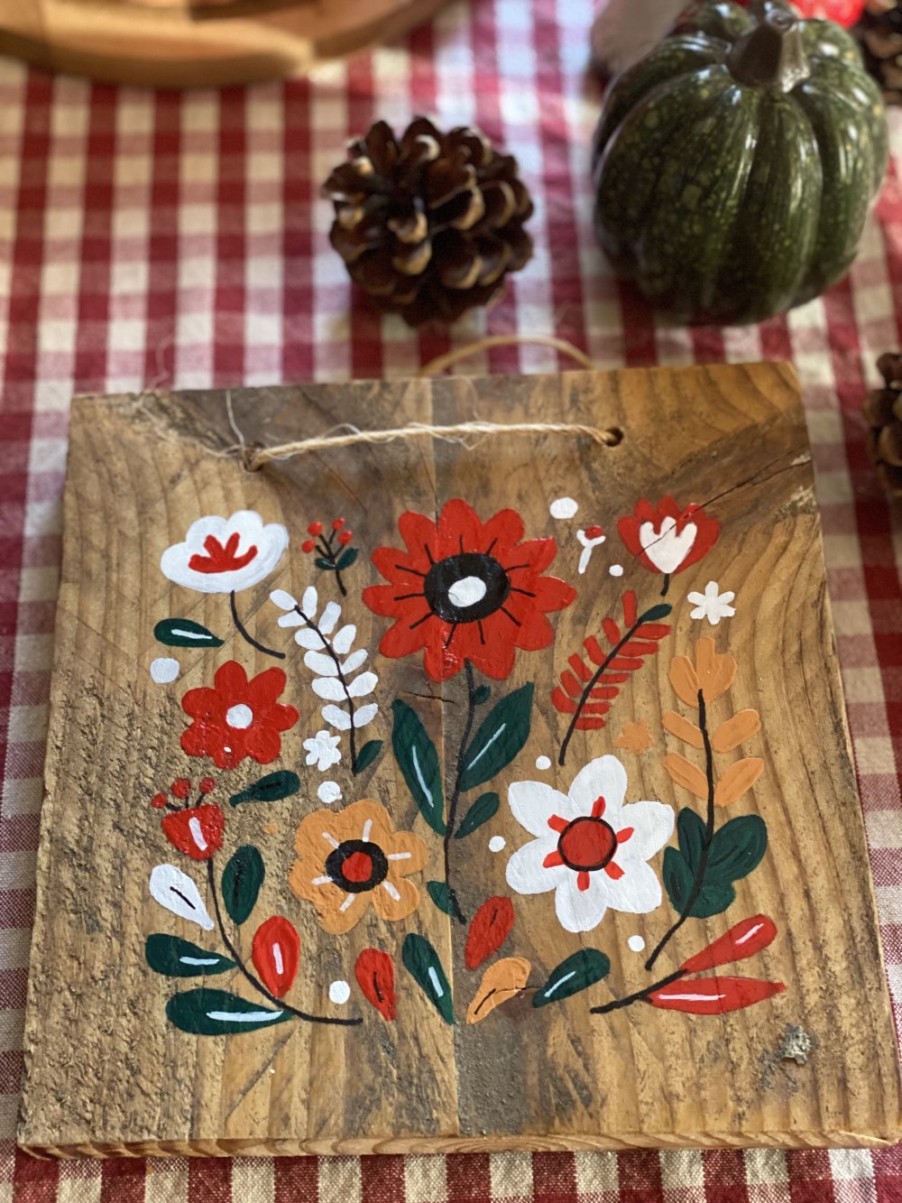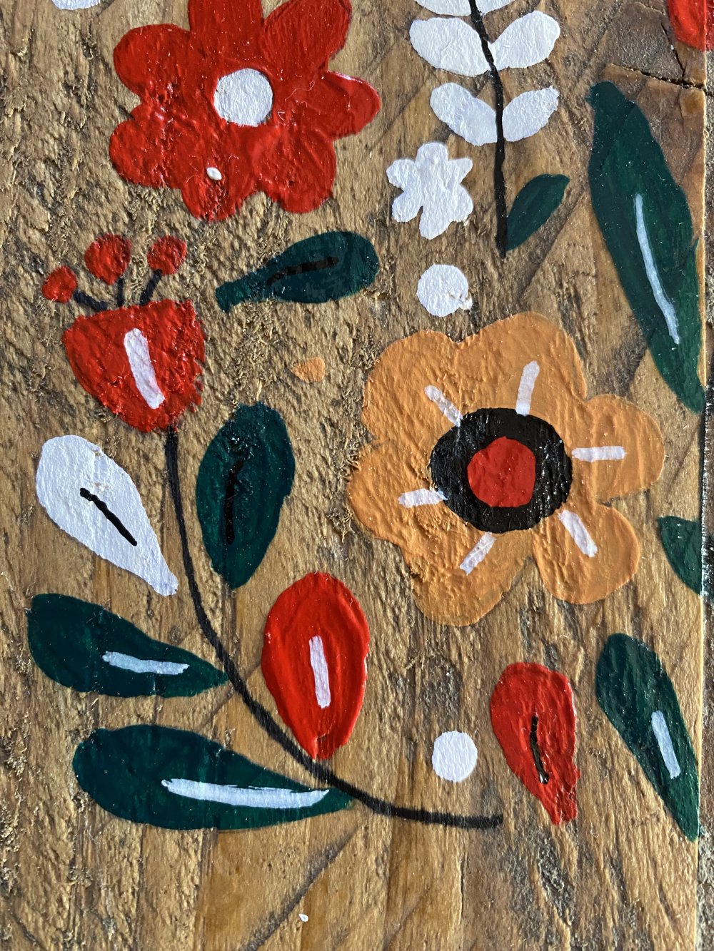 Tableau en bois peint avec des fleurs, inspiration folklorique