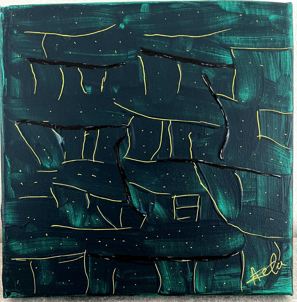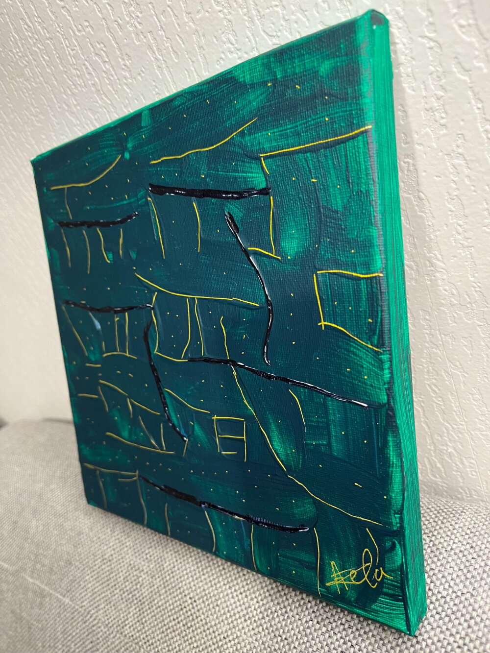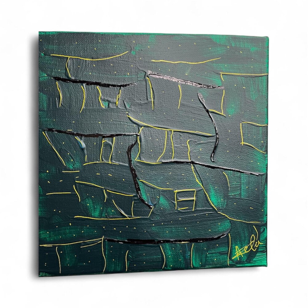 Tableau peint sur toile technique acrylique 20x20 Fragments dorés