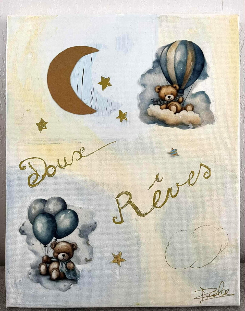Tableau Doux Rêves 24x30 – Technique mixte (Acrylique & collage) – signé Azela.