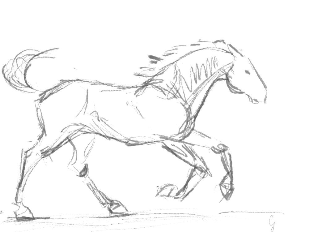 Esquisse d'un cheval au galop