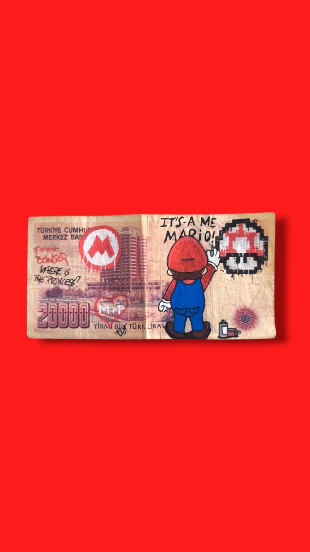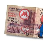 Mario, héros de Nintendo, s’invite sur un vrai billet turc ancien pour une touche d’humour et de modernité.