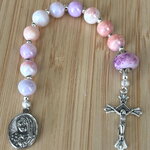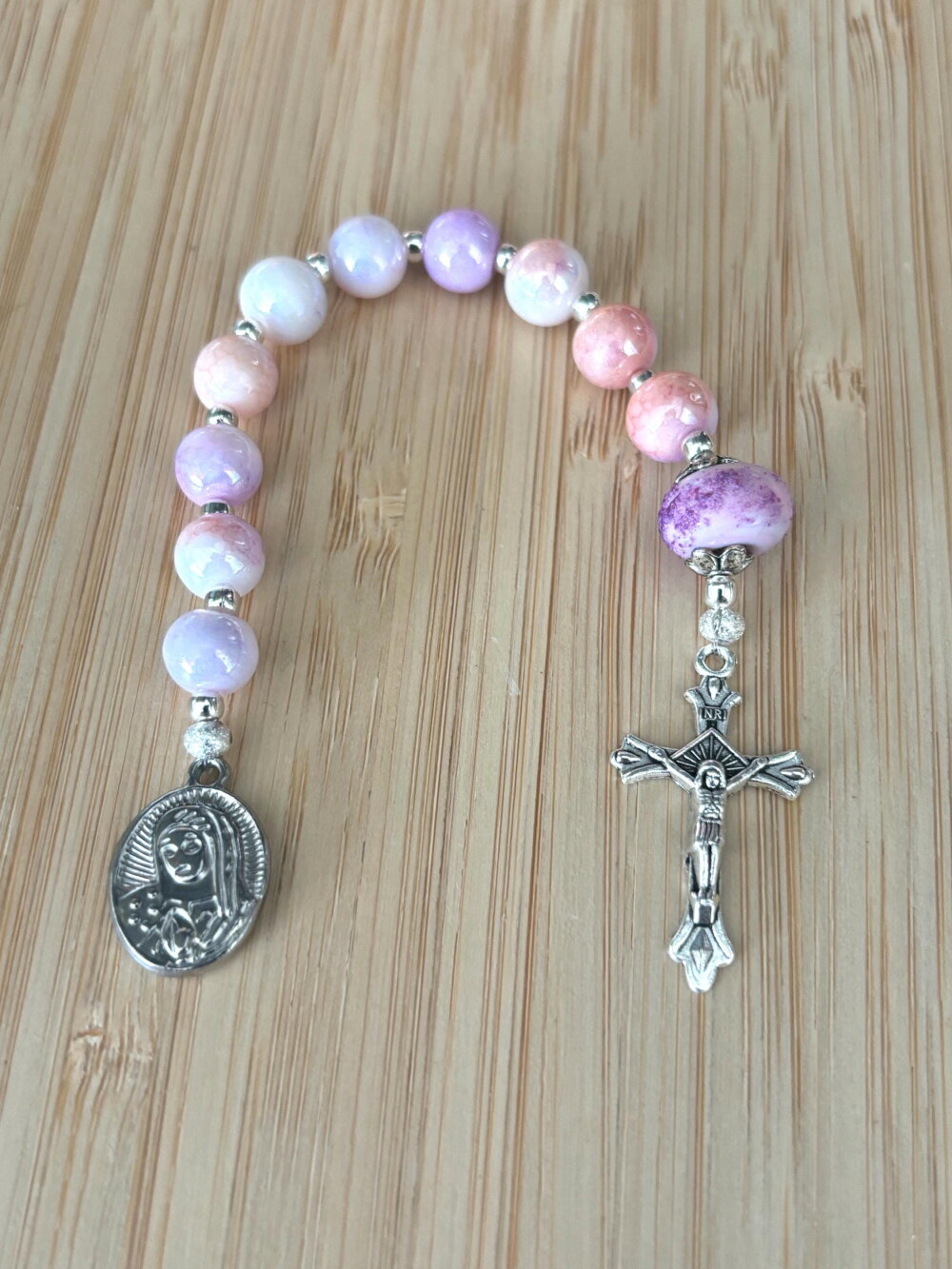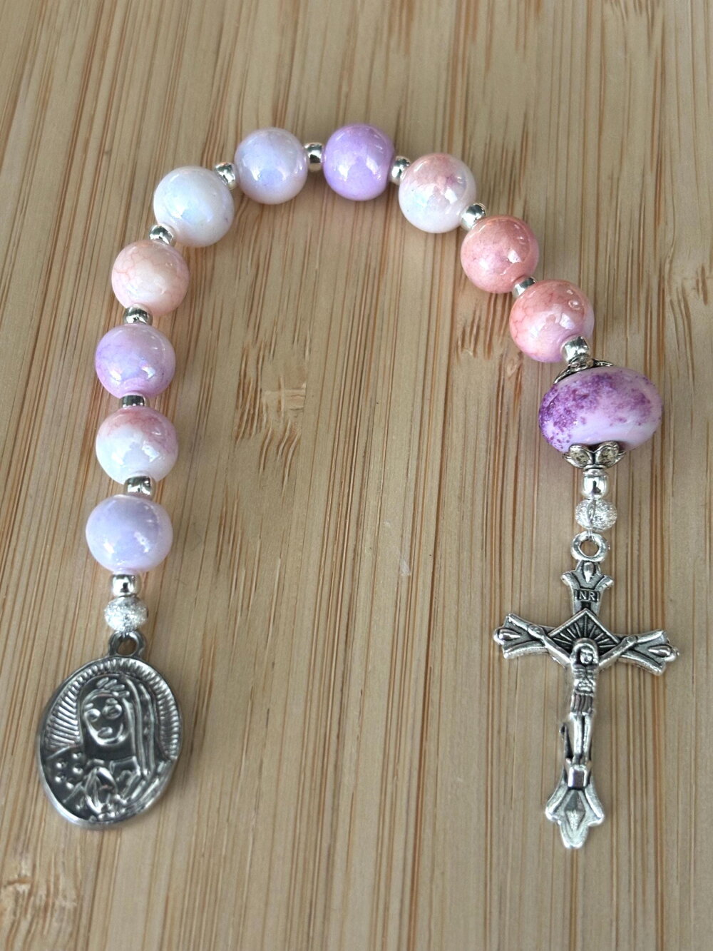 Dizainier Chrétien, chapelet de poche, chapelet rose marbré, chapelet de protection, chapelet médaillon Marie, cadeau religieux, cadeaux