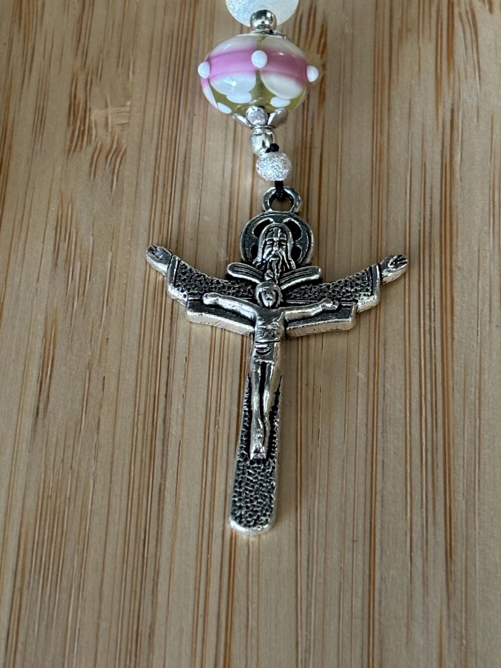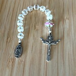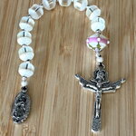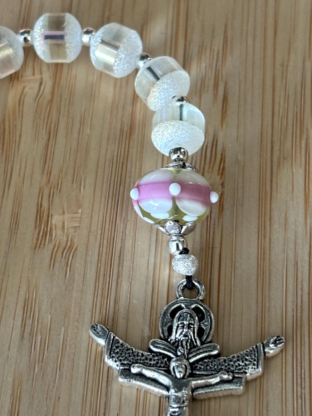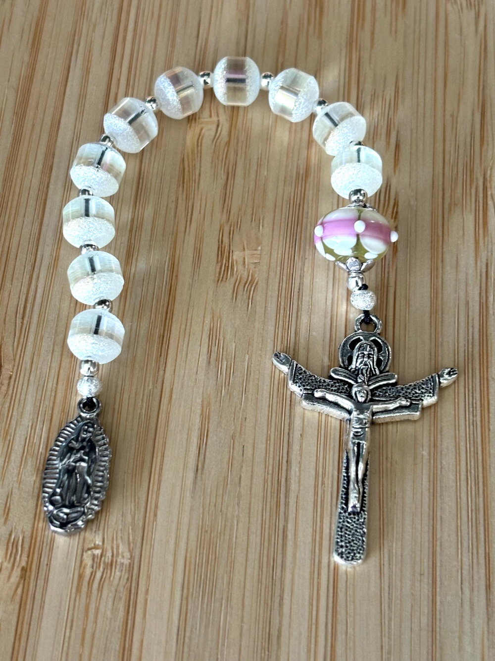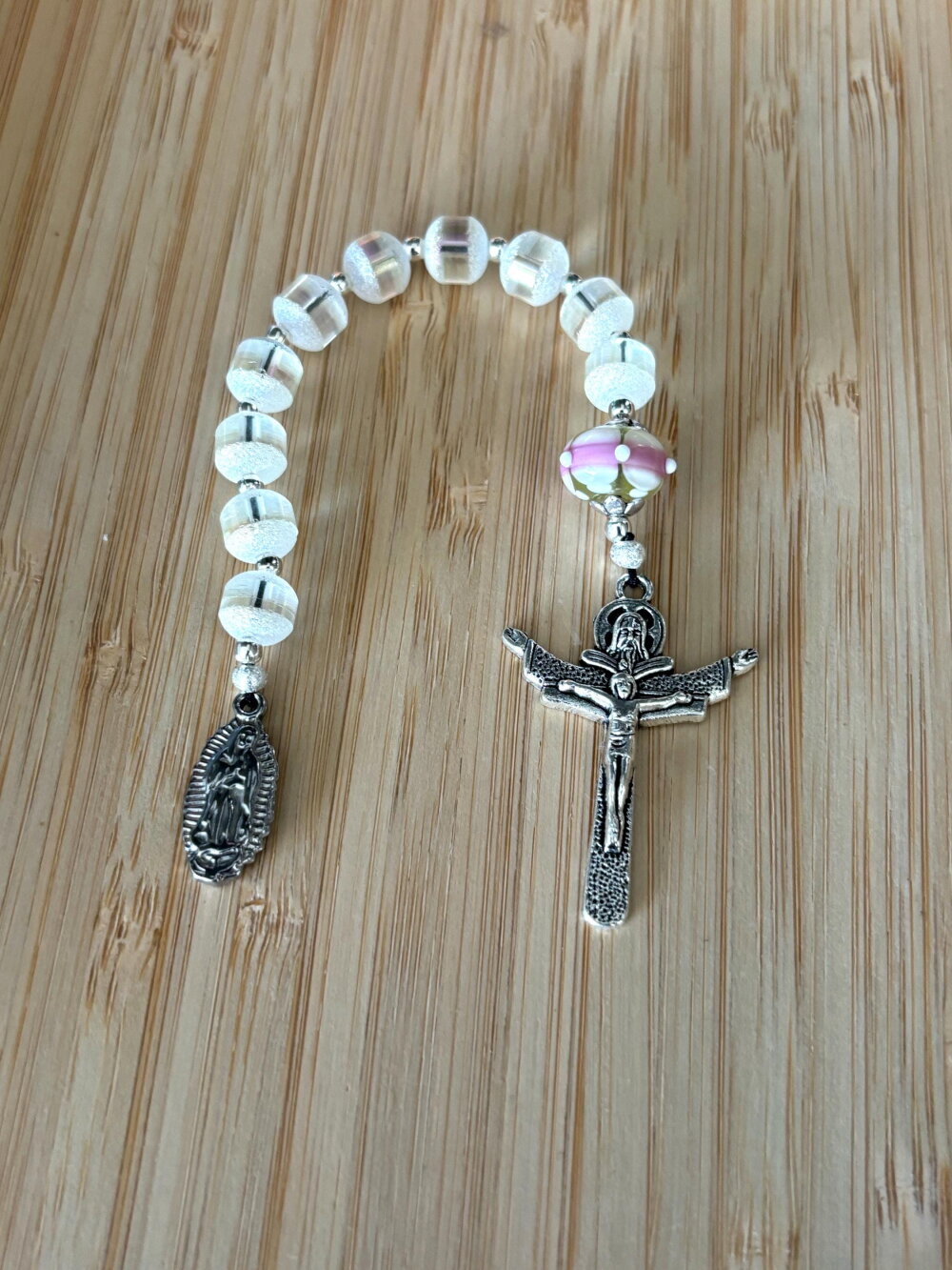 Dizainier Chrétien, chapelet de poche chrétien, chapelet perles verre, chapelet perles files, chapelet rose et blanc, cadeau religieux,