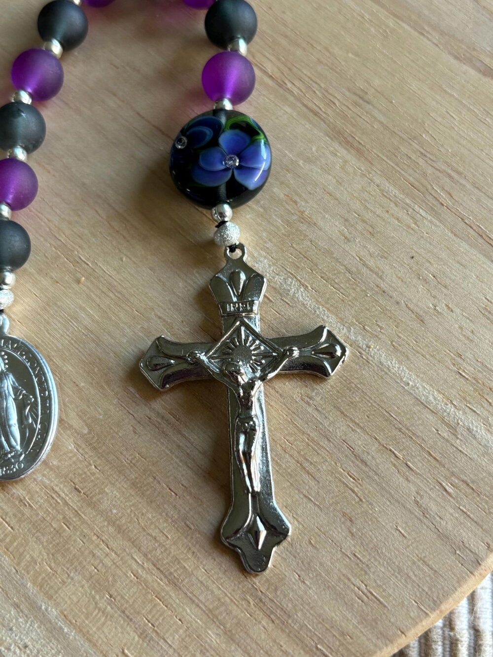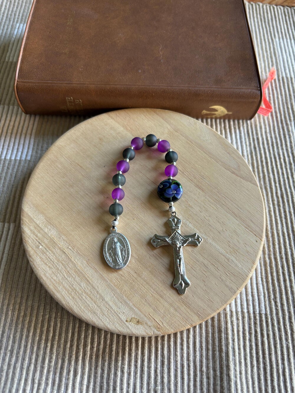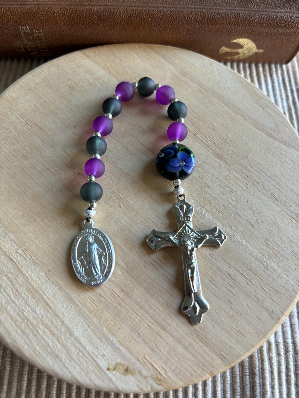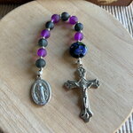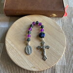 Dizainier chrétien , chapelet de poche chrétien, chapelet noir violet, chapelet perles artisanales, chapelet protection, rosaire chrétien