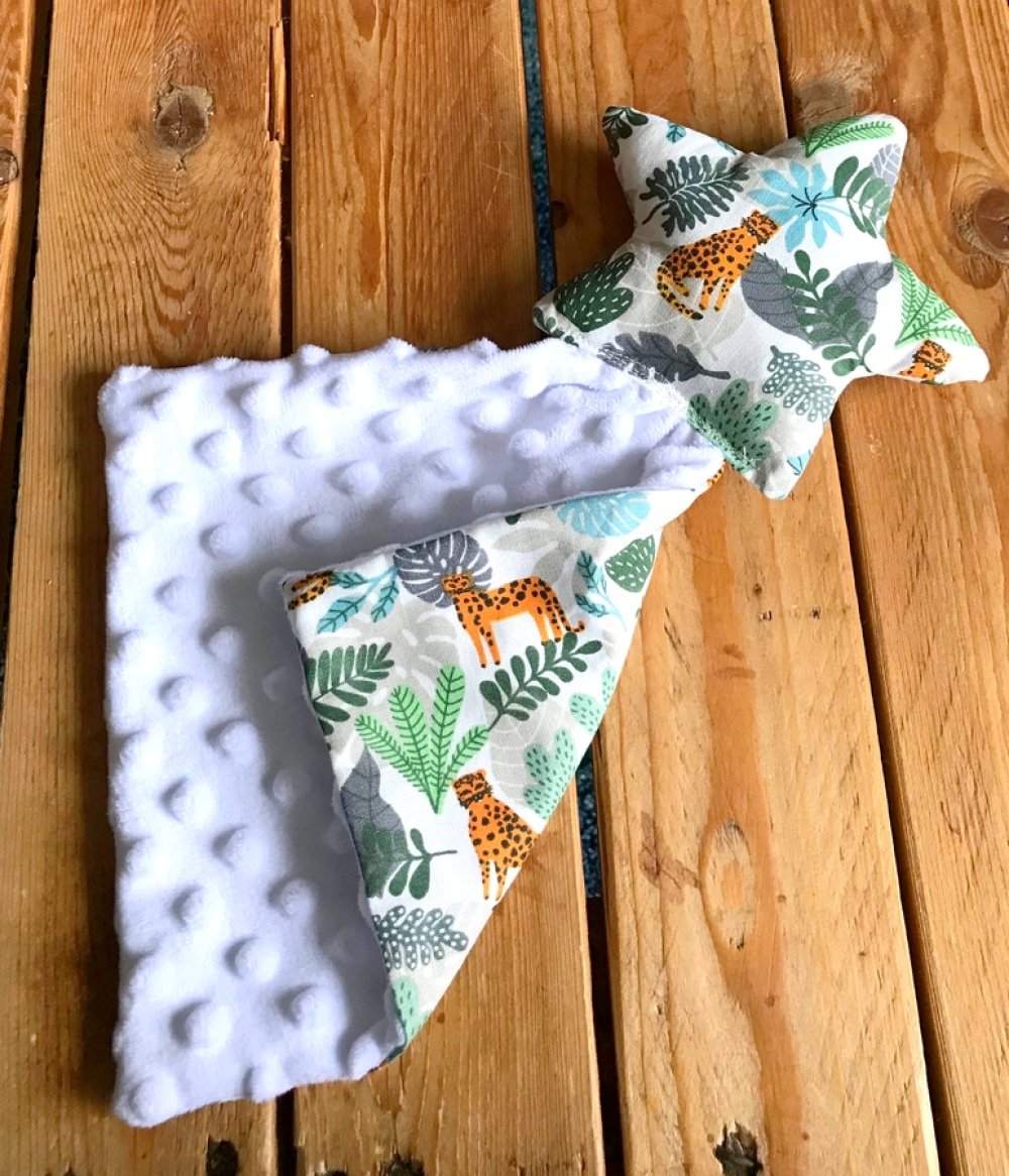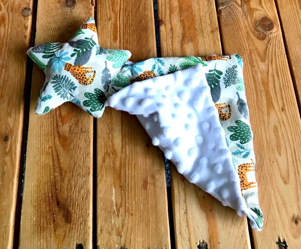 doudou plat bébé, doudou bébé en minkee et jersey, doudou etoile, cadeau bébé naissance