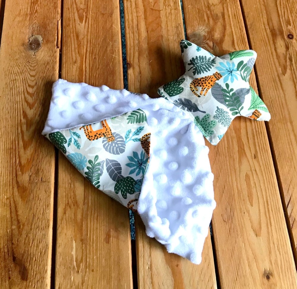 Doudou bébé réalisé en polaire minkee toute douce pour un effet cocon sur bébé.