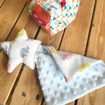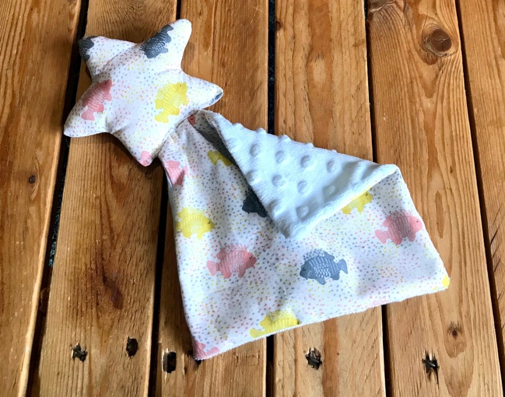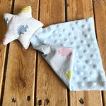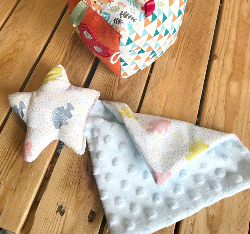 doudou plat bébé, doudou bébé en minkee et coton doudou etoile, cadeau naissance
