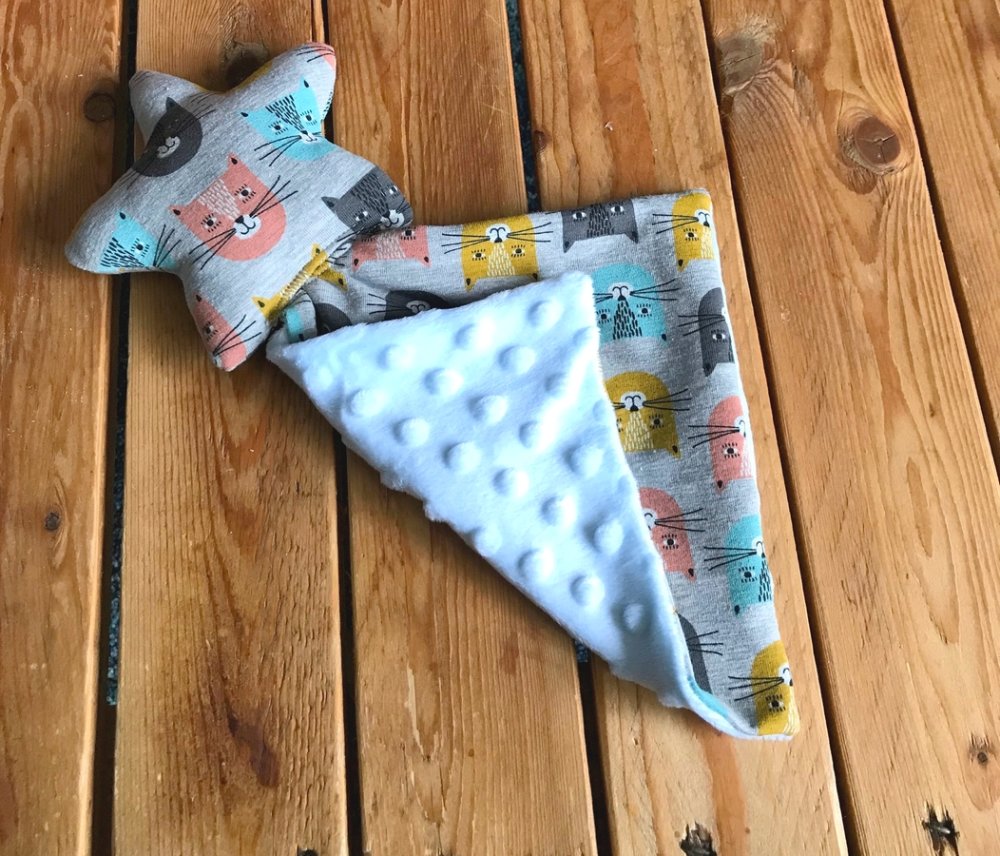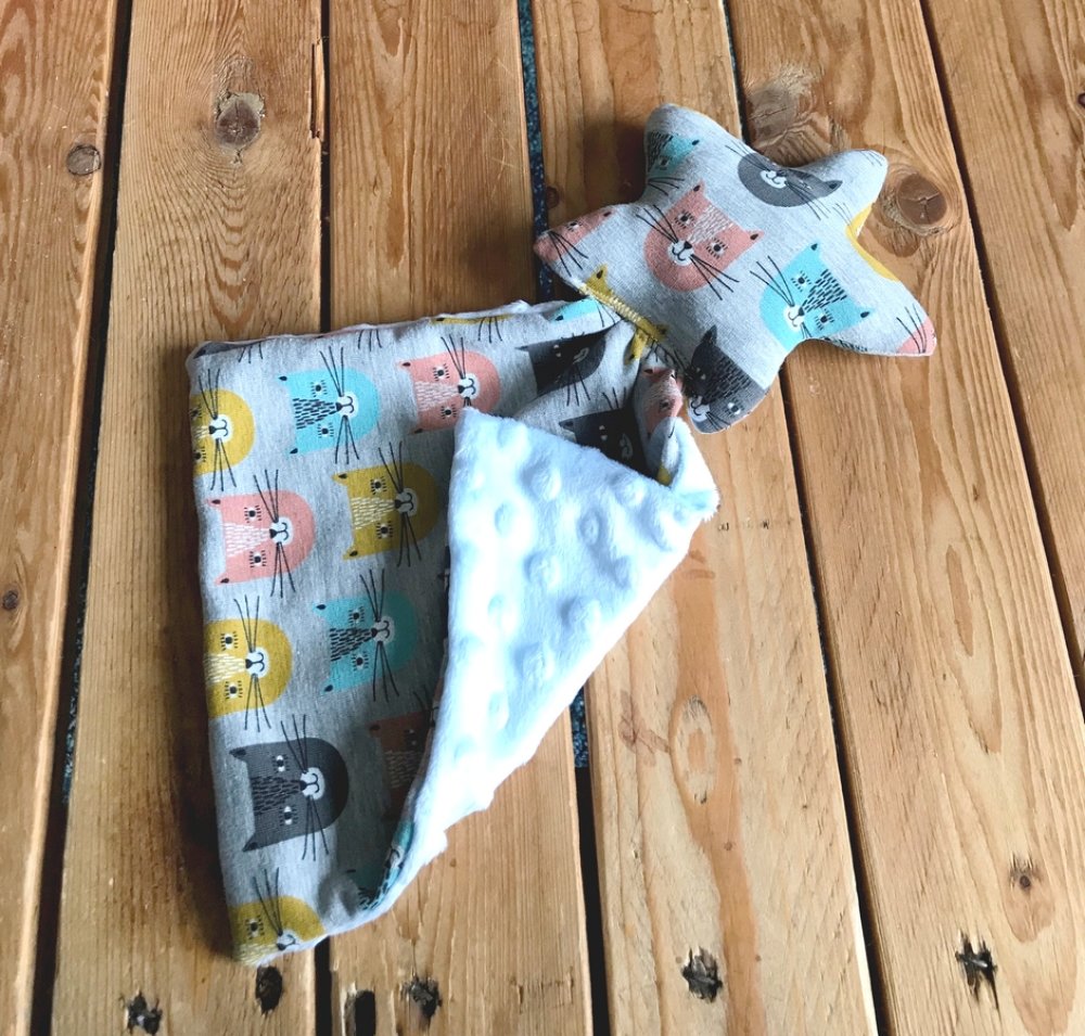 Doudou bébé réalisé en polaire minkee toute douce pour un effet cocon sur bébé.