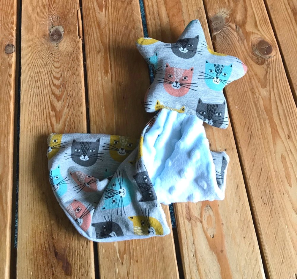 doudou plat bébé, doudou en minkee et jersey, doudou etoile, cadeau bébé naissance