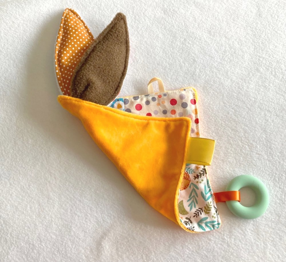 Bébé fera ses dents lorsque celles ci commenceront à sortir , ce doudou fera aussi un parfait jouet à emporter partout!