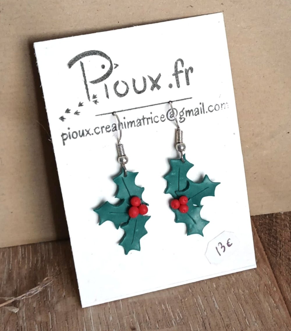 Du houx pour décorer le sapin de noël - boucles d'oreille