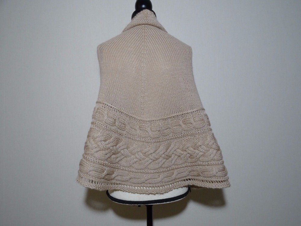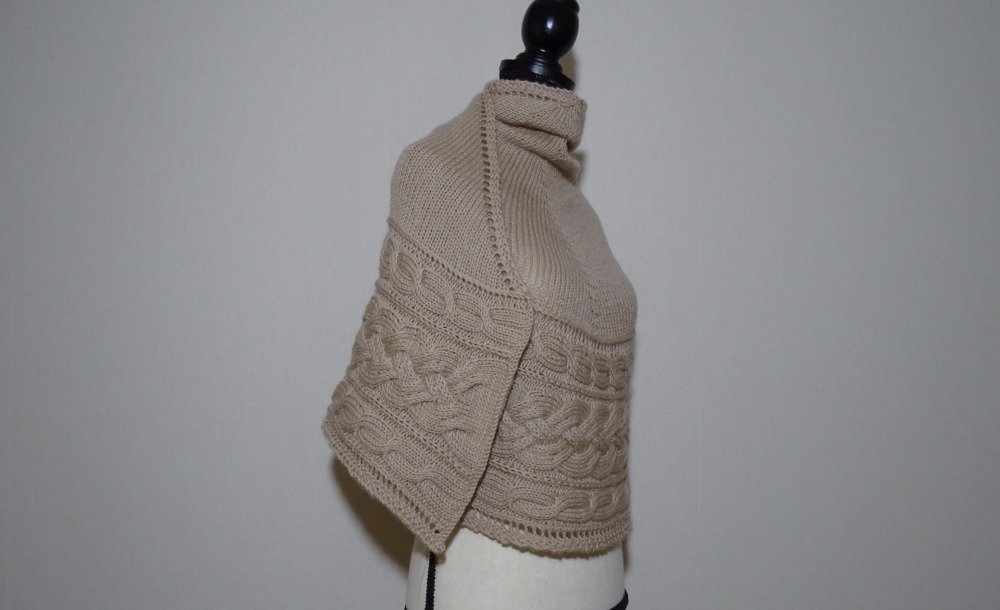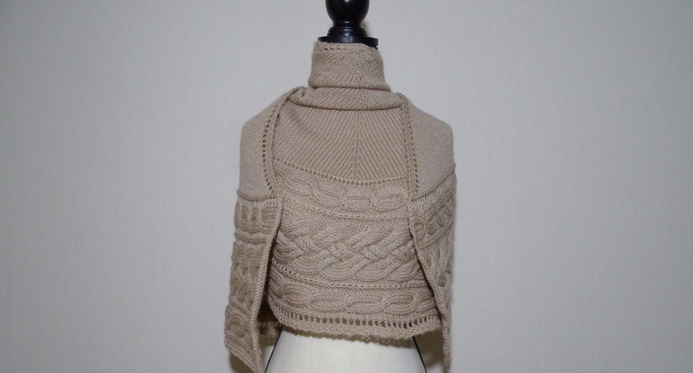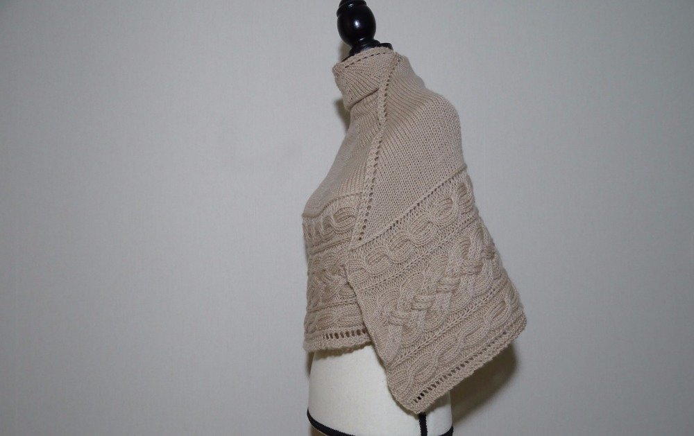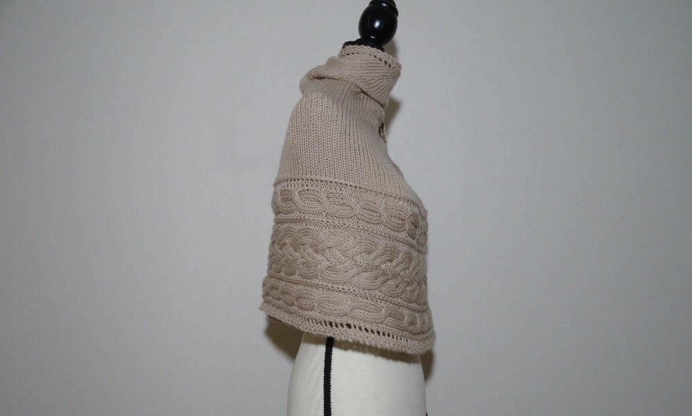 Châle chauffe-épaules beige à torsades tricoté main en laine, chèche