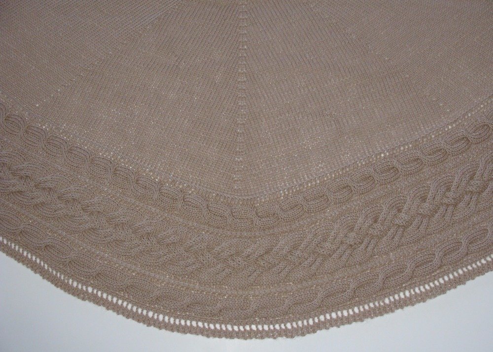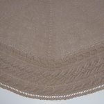 Ce châle à la bordure composée de motifs torsadés a été réalisé dans un fil naturel 100% laine; il est bien chaud. Il est d'une teinte beige très douce.