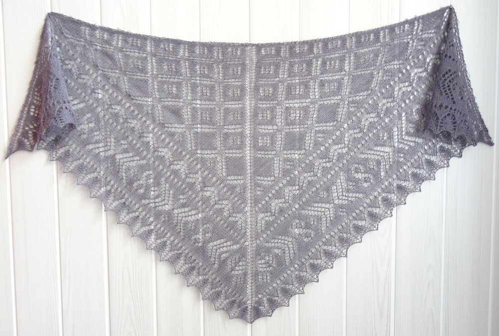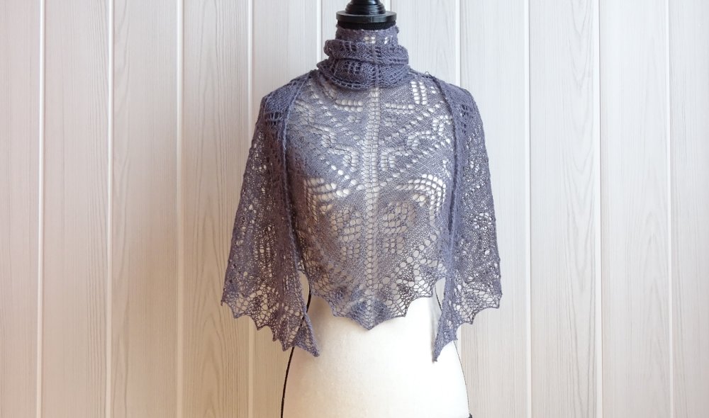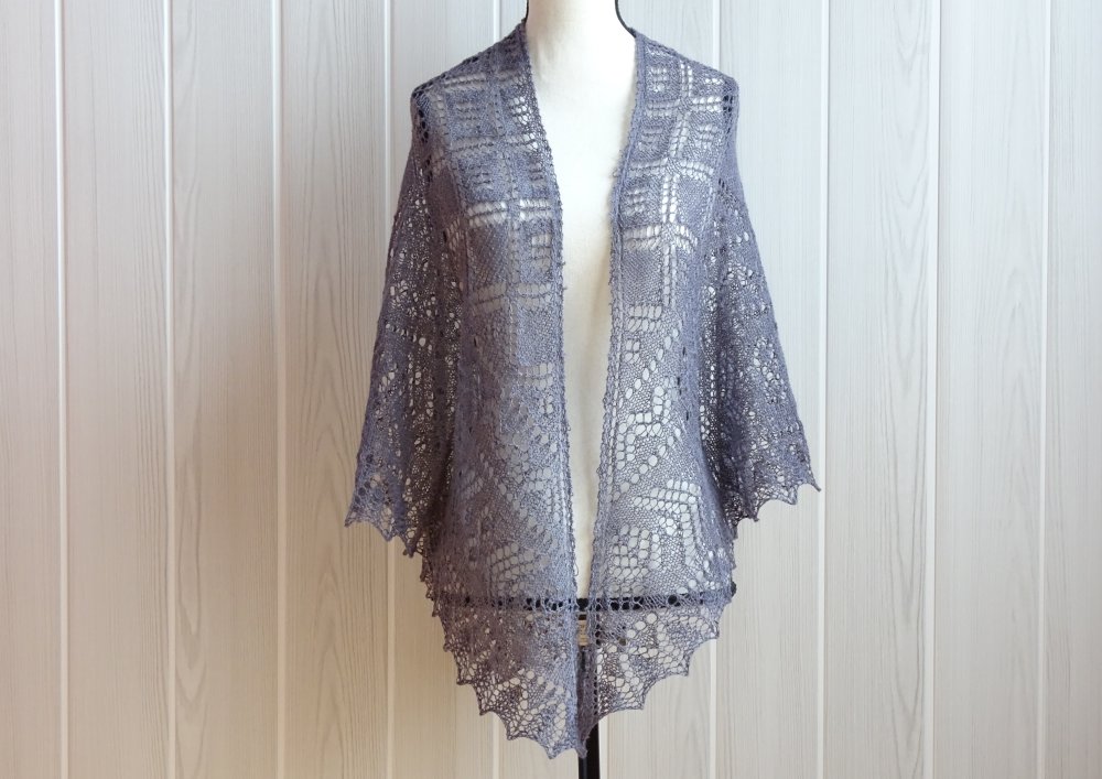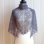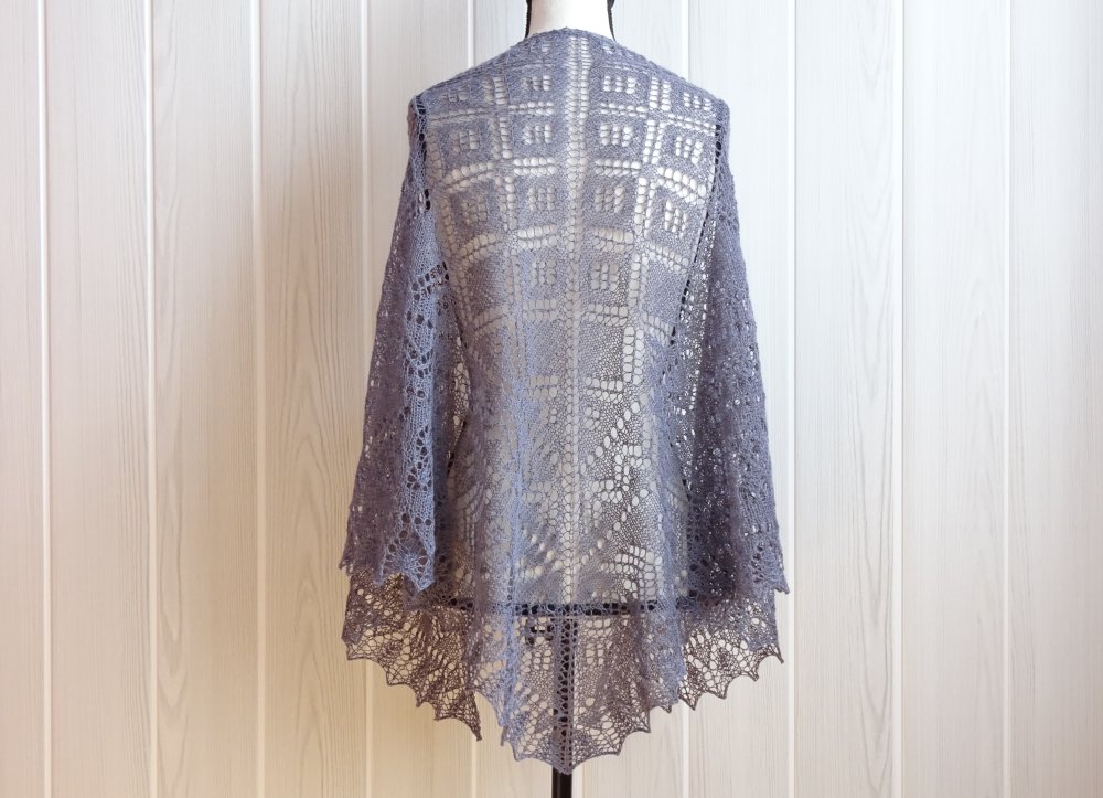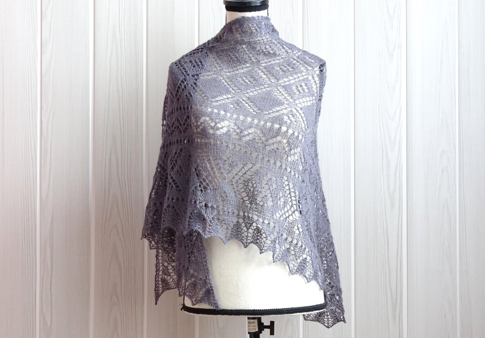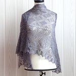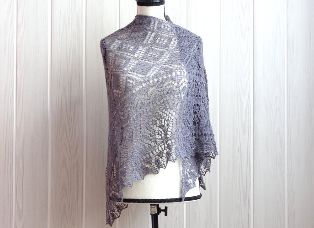 Châle dentelle violet lilas en laine alpaga et mérinos tricoté main.