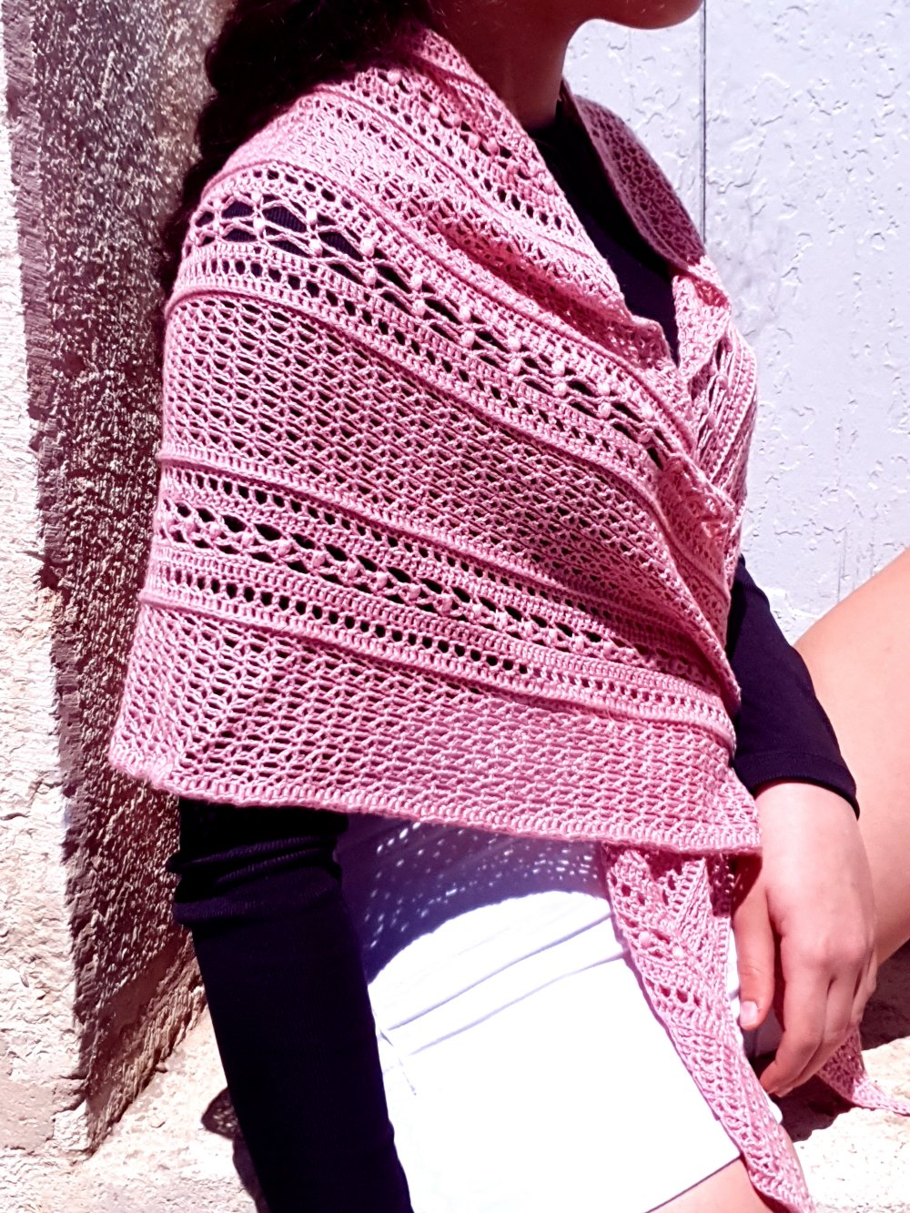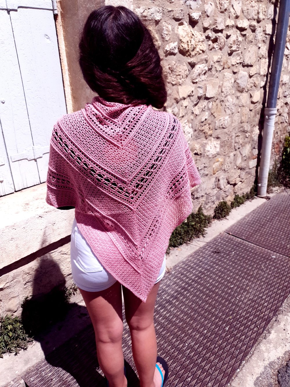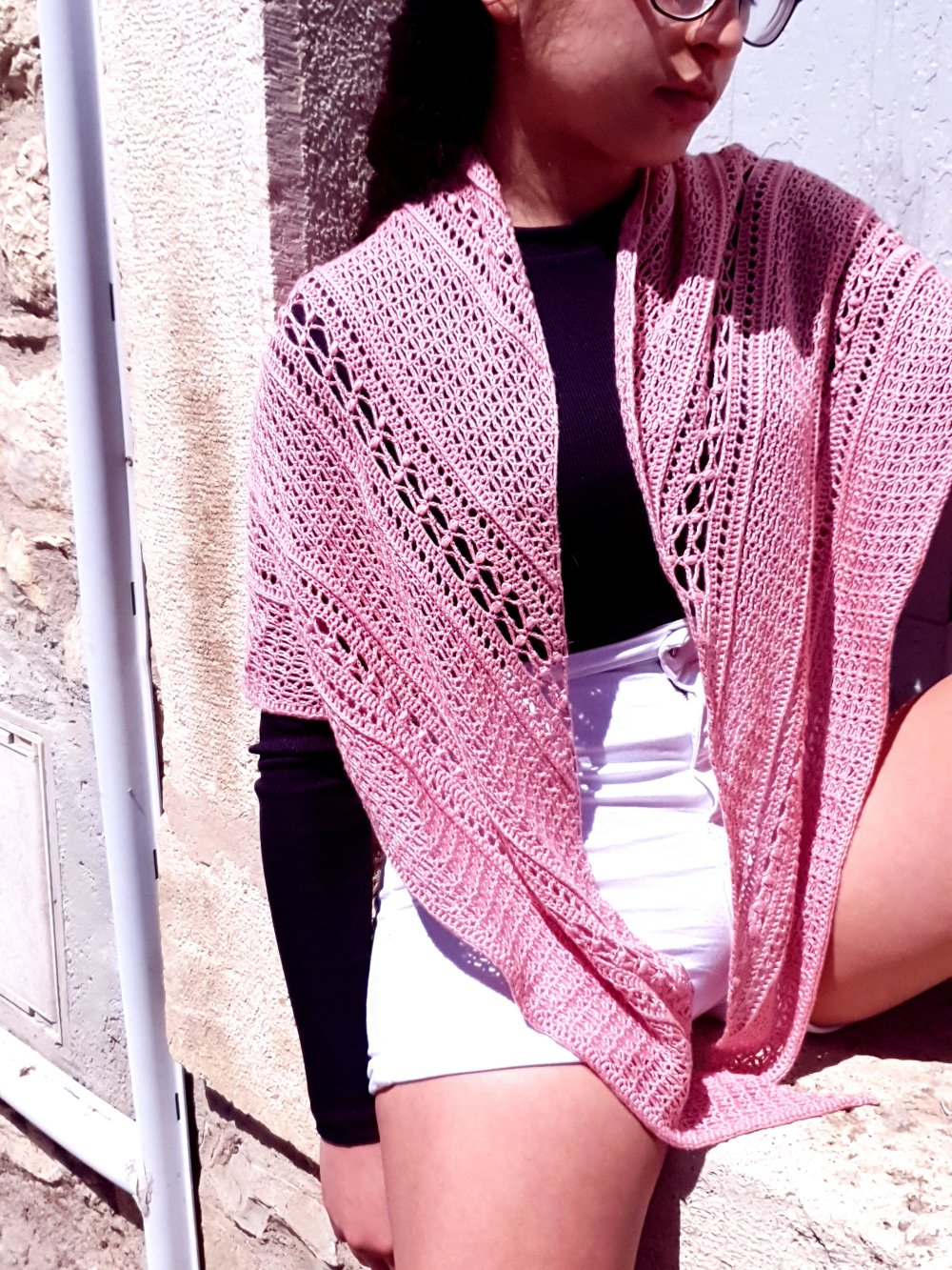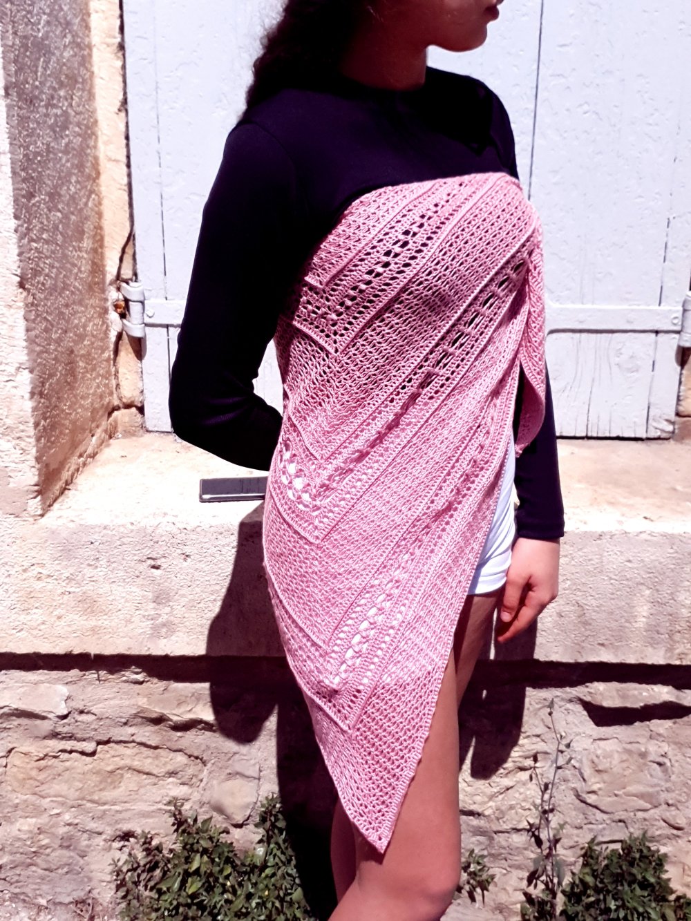 Crocheté à la main avec un fil Tencel Bamboo, ce châle à la couleur si douce et aux jolis effets de relief ajoutera une touche sophistiquée à votre tenue tant porté en châle qu'en paréo pour l'été.