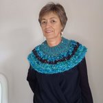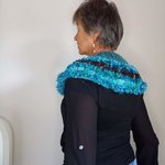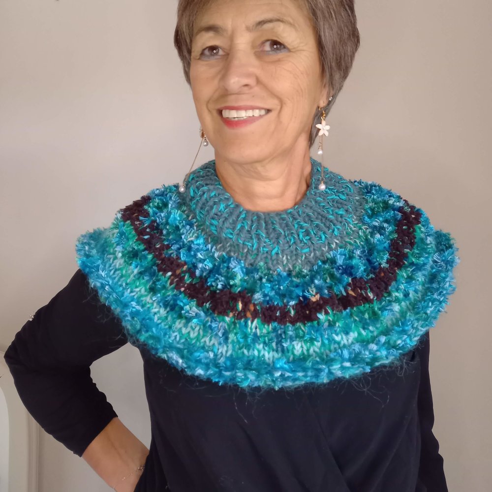 Chauffe épaule pour femme tricoté en laine dans des tons de bleu vert.