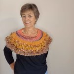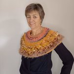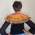 Chauffe épaule pour femme tricoté en laine dans des tons de orange marron moutarde.