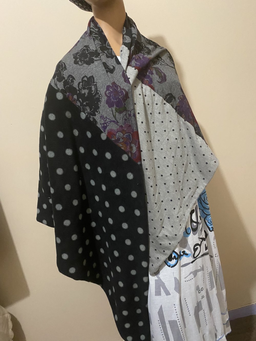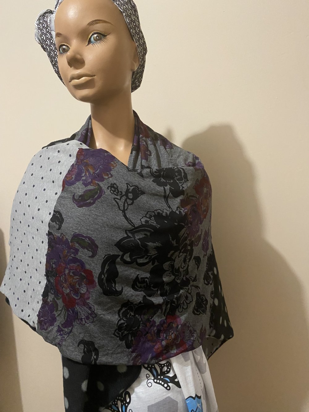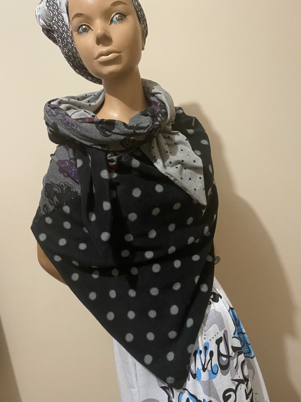 ECHARPE REVERSIBLE COUSUE EN TRIANGLE QUI PEUT SE PORTER COMME VOUS LE SOUHAITEZ