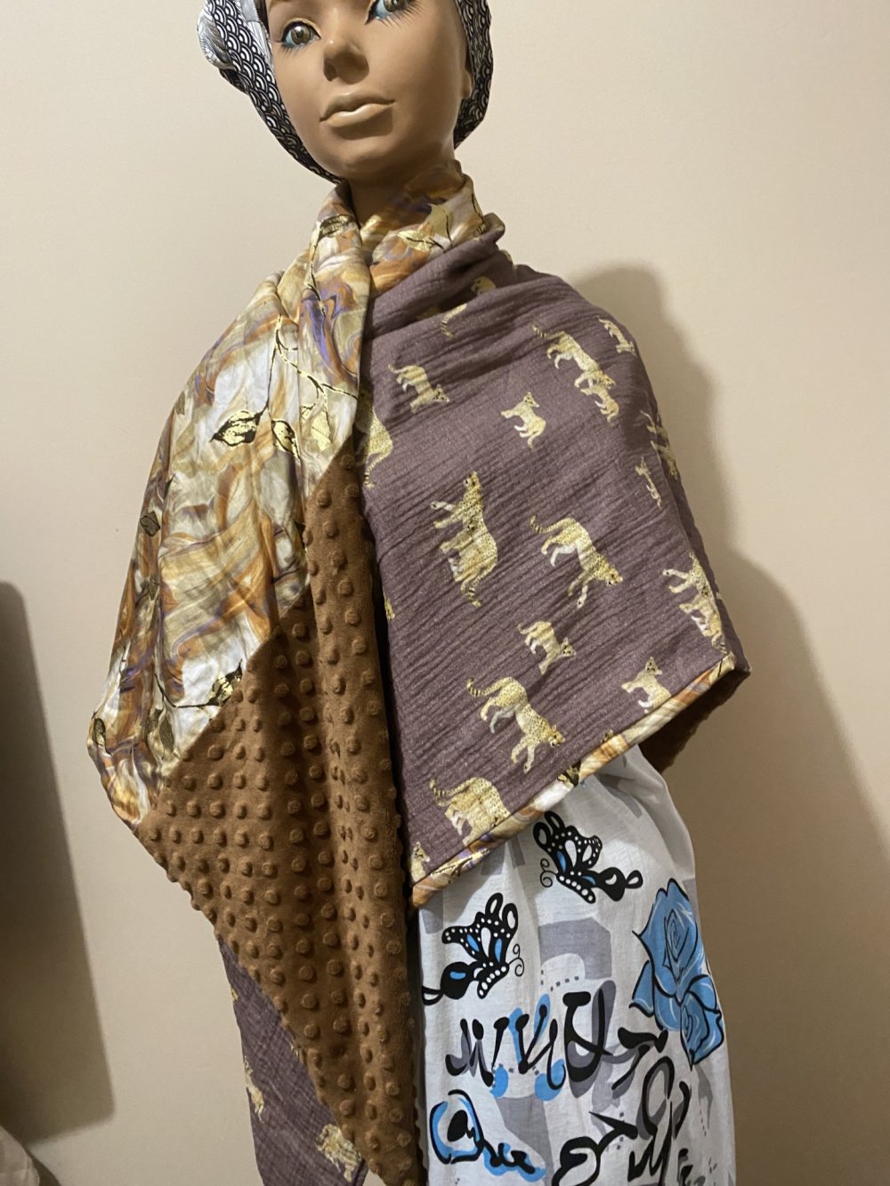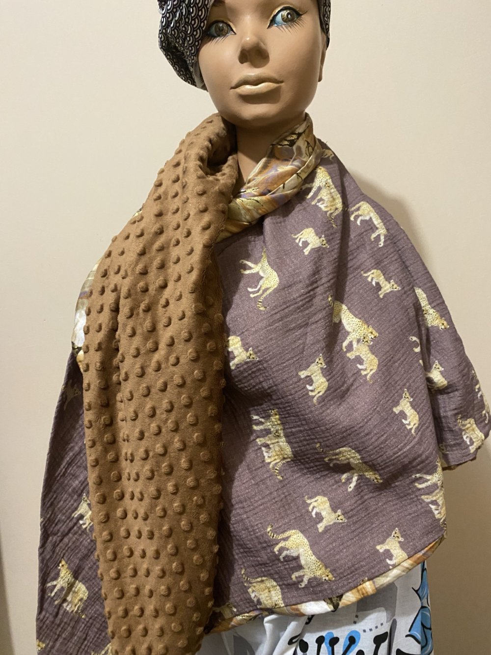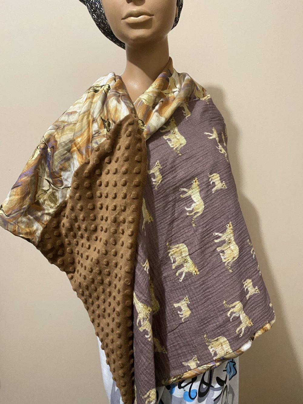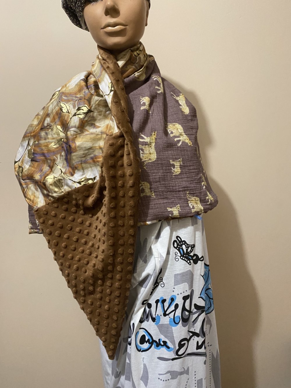 ECHARPE REVERSIBLE COUSUE EN TRIANGLE QUI PEUT SE PORTER COMME VOUS LE SOUHAITEZ