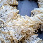 Laine 86% acrylique et 14% polyester couleur blanc/écru et doré