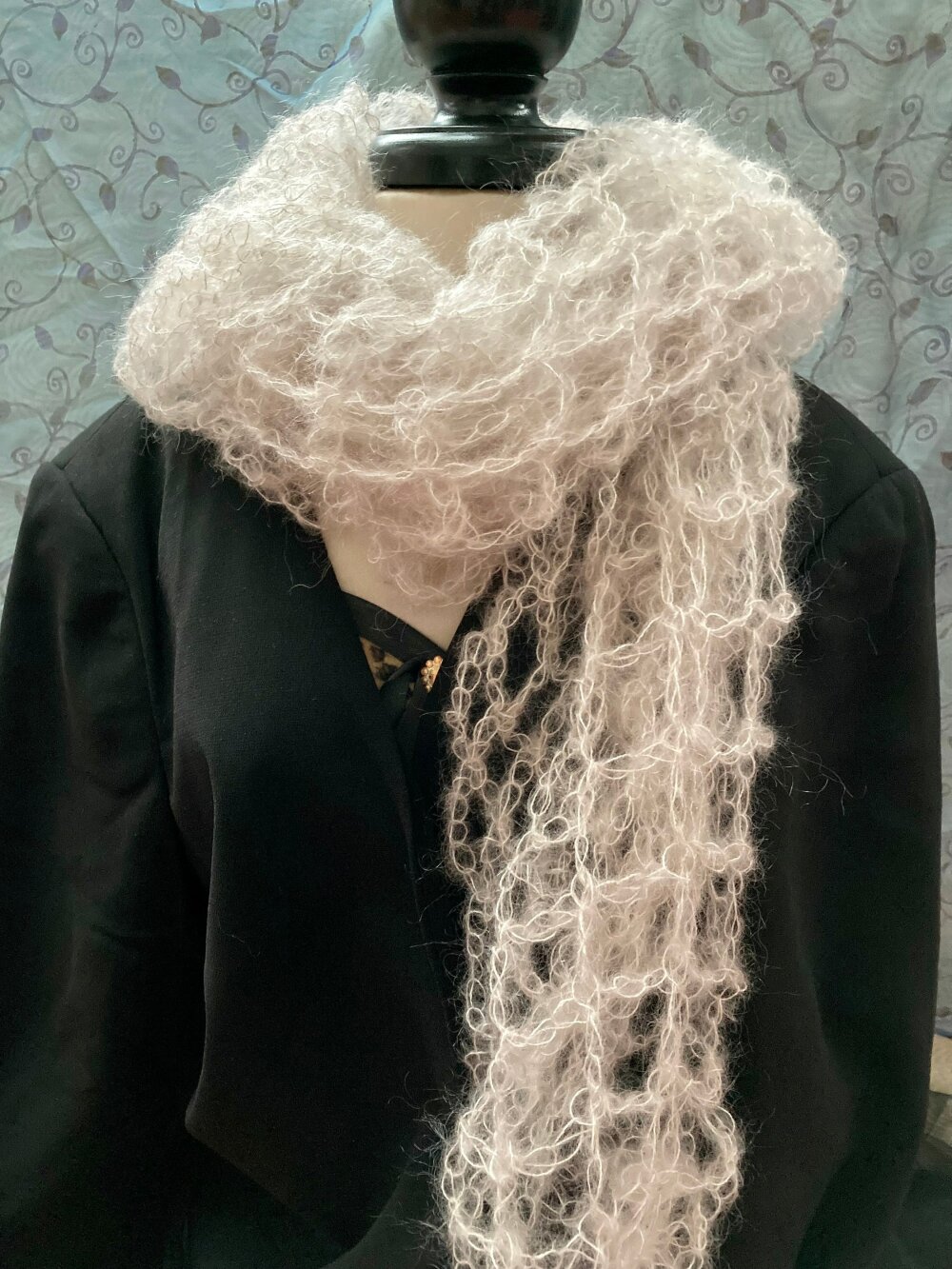 Echarpe femme en dentelle mohair mohair faite main au crochet, léger,doux,chaud,pour sac,poche,ballade