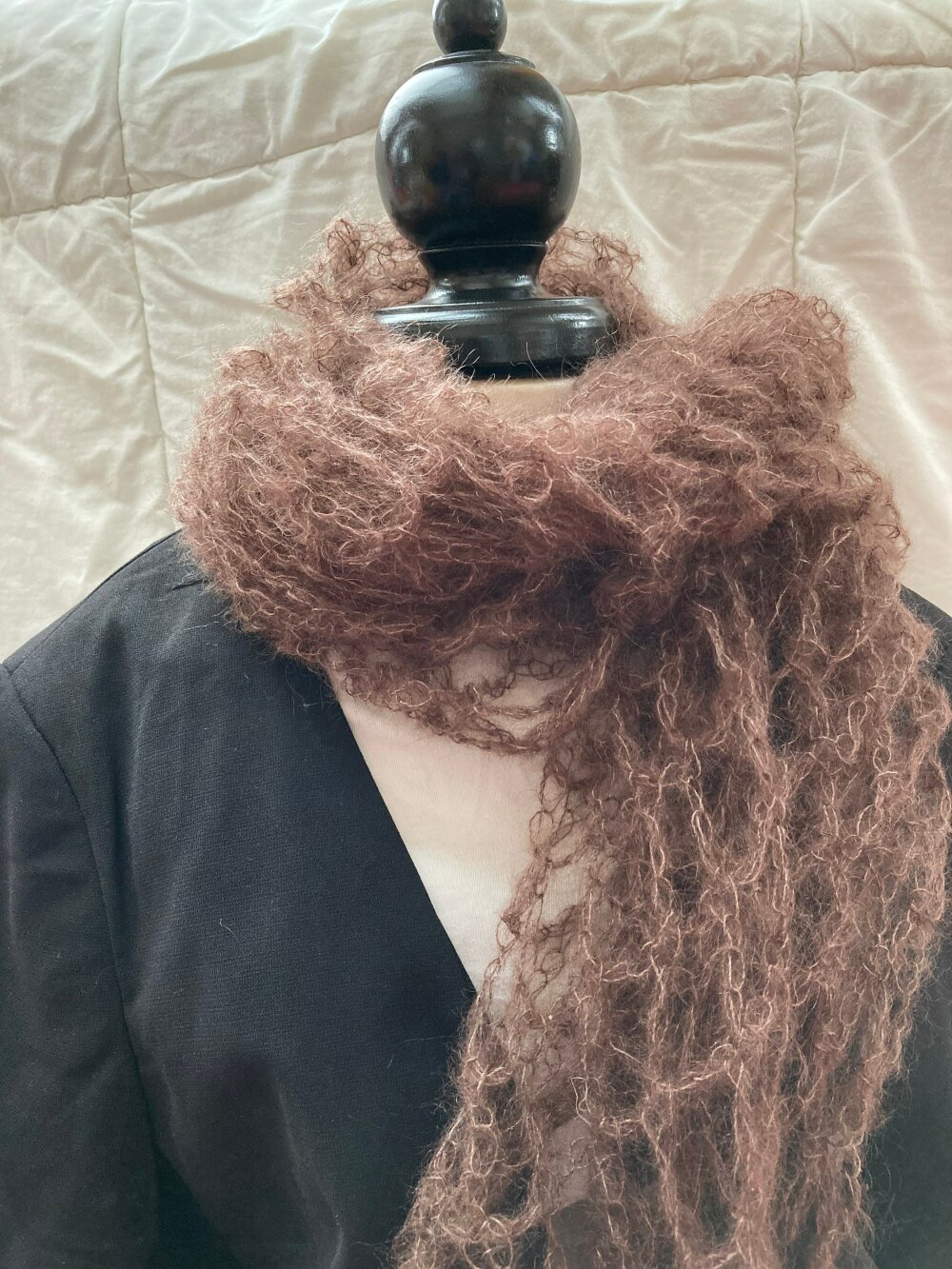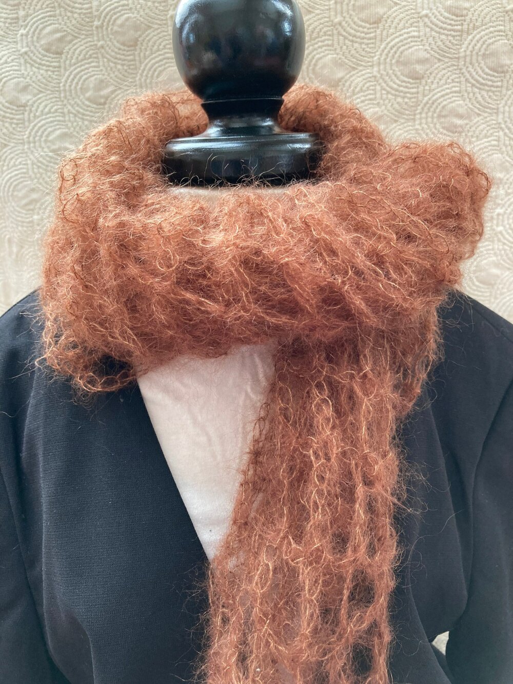 Originale, elle a été crochetée souplement à la main avec un fil mohair (75%) et soie naturelle (25%) particulièrement doux et chaud qui ne gratte pas!