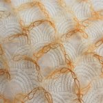 L'écharpe présentée sur cette annonce est réalisée dans un camaïeux de jaune, camel.